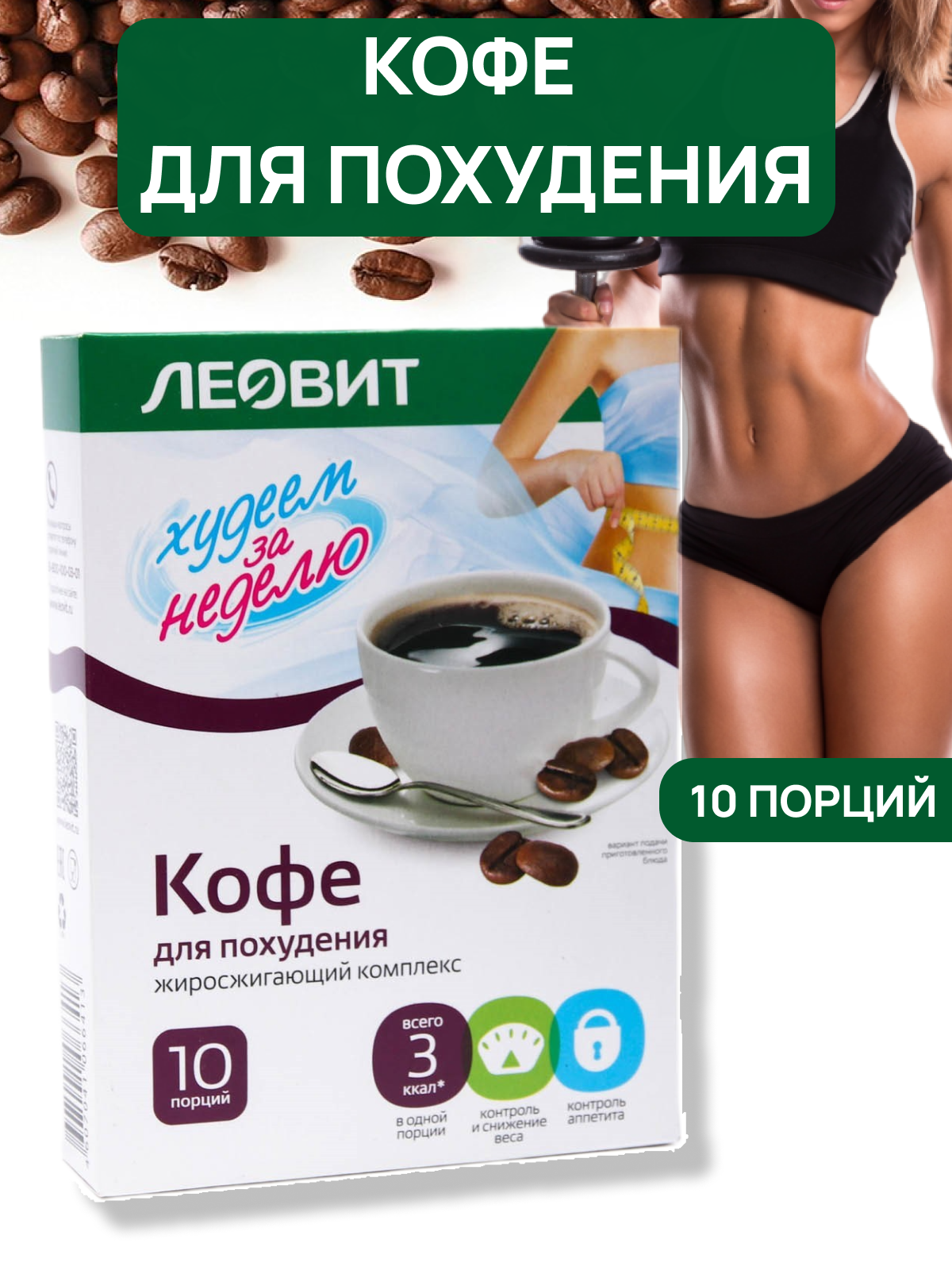 Кофе для похудения (жиросжигающий комплекс) Худеем за неделю, 10 пакетов по 3 г, леовит интересное: