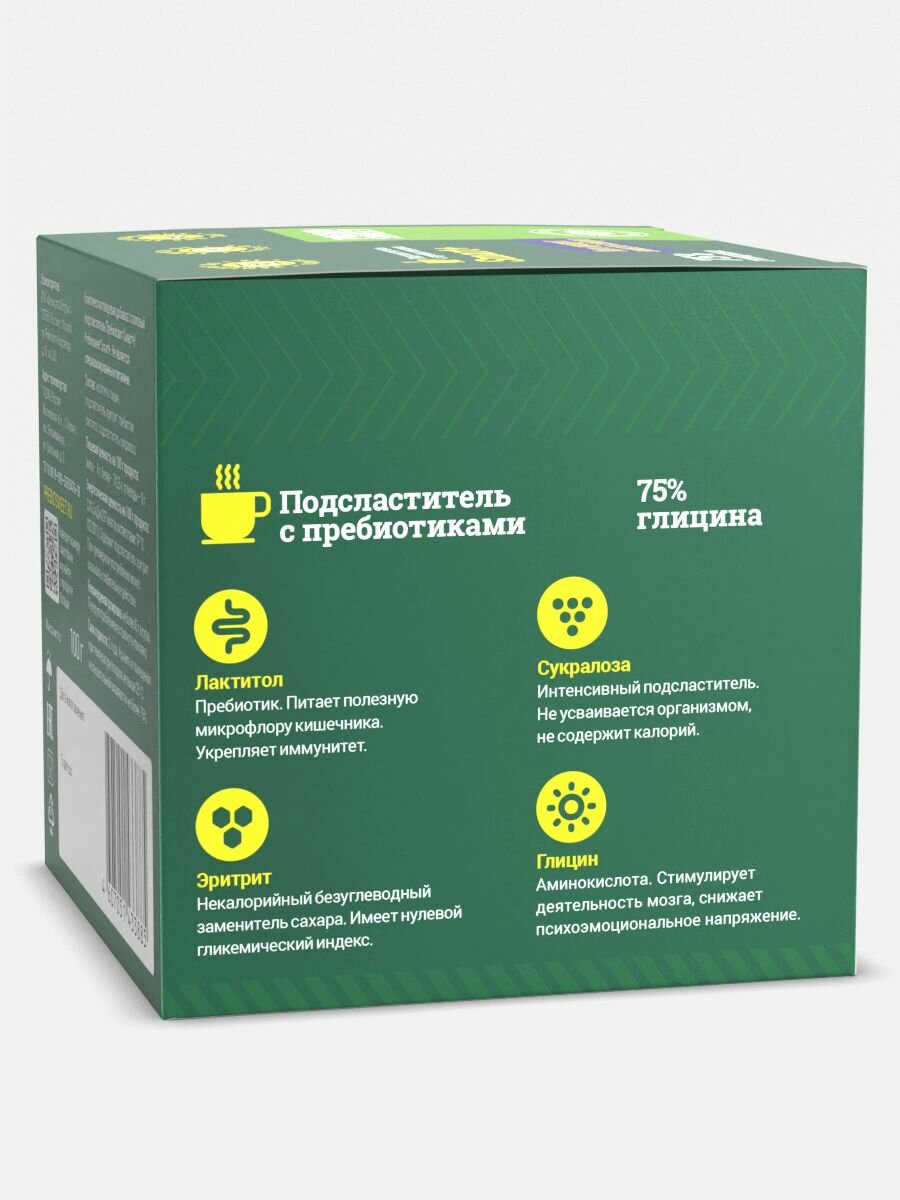| Состав | носитель глицин, подсластитель эритрит, пребиотик лактитол, подсластитель сукралоза |