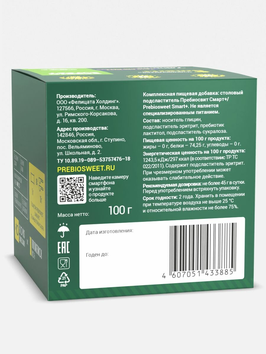 Сахарозаменитель Пребиосвит Смарт+ (Prebiosweet Smart+) в стиках по 1г 100 шт интересное: