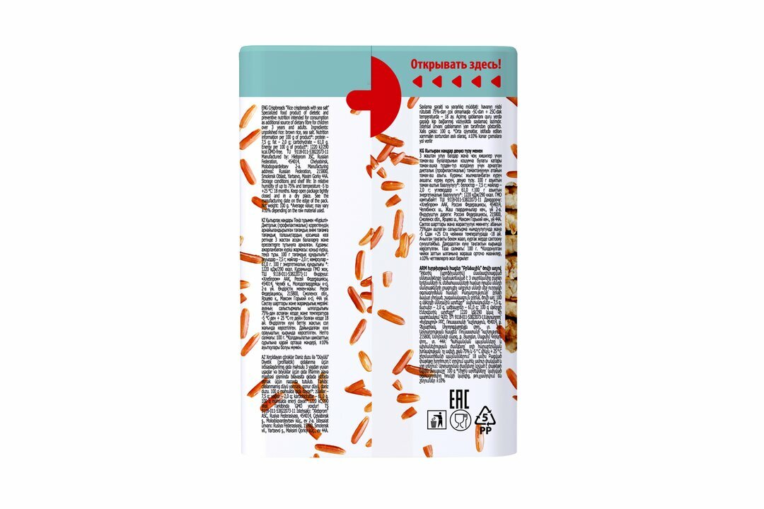 | Состав | Крупа рисовая нешлифованная: рис бурый / соль морская |