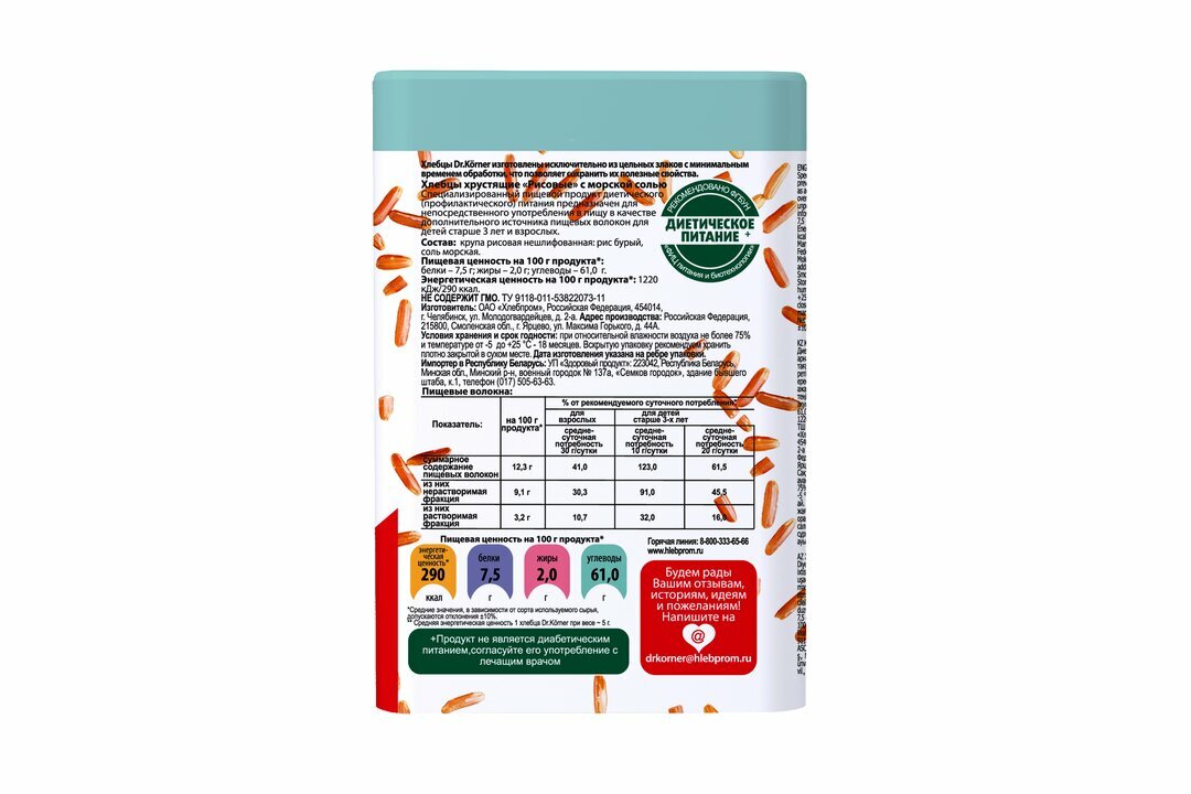 Хлебцы DR.KORNER "Рисовые" с морской солью, хрустящие, 100 г, пакет, 601090058 интересное: