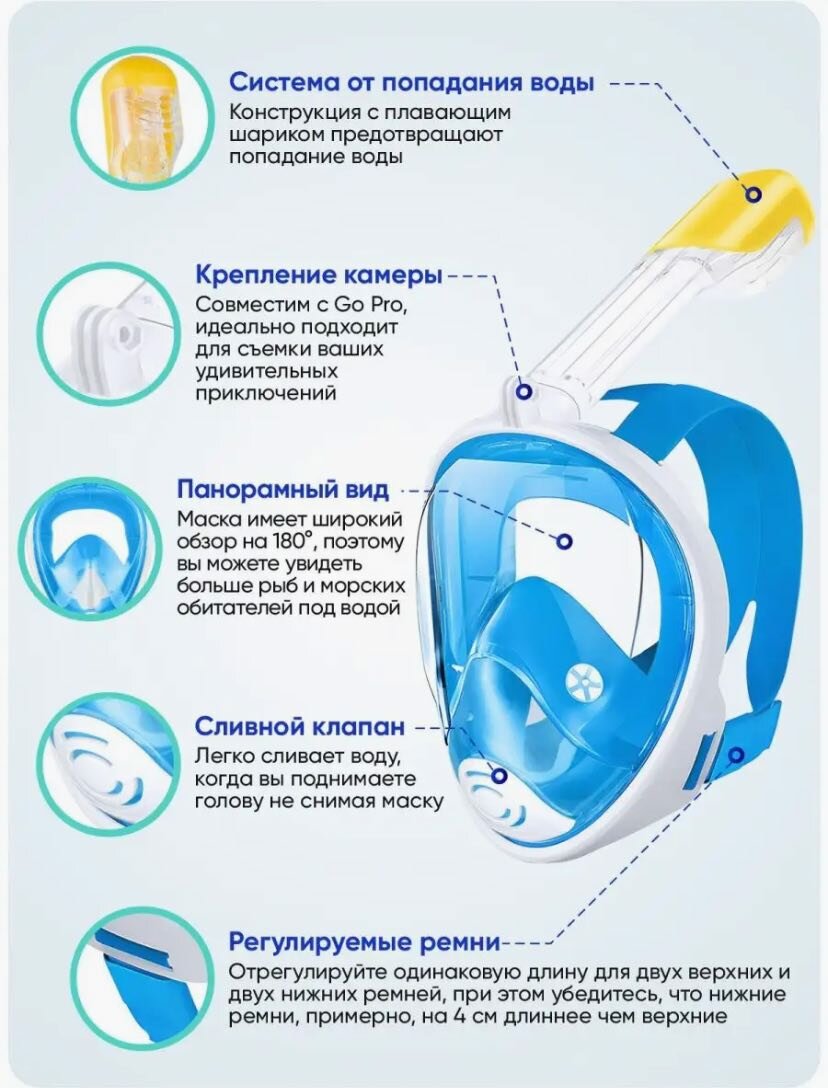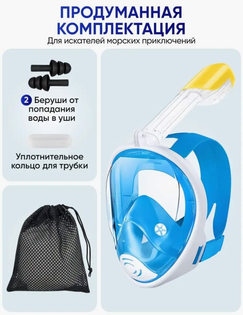 Маска для плавания, снорклинга синяя L/XL интересное: