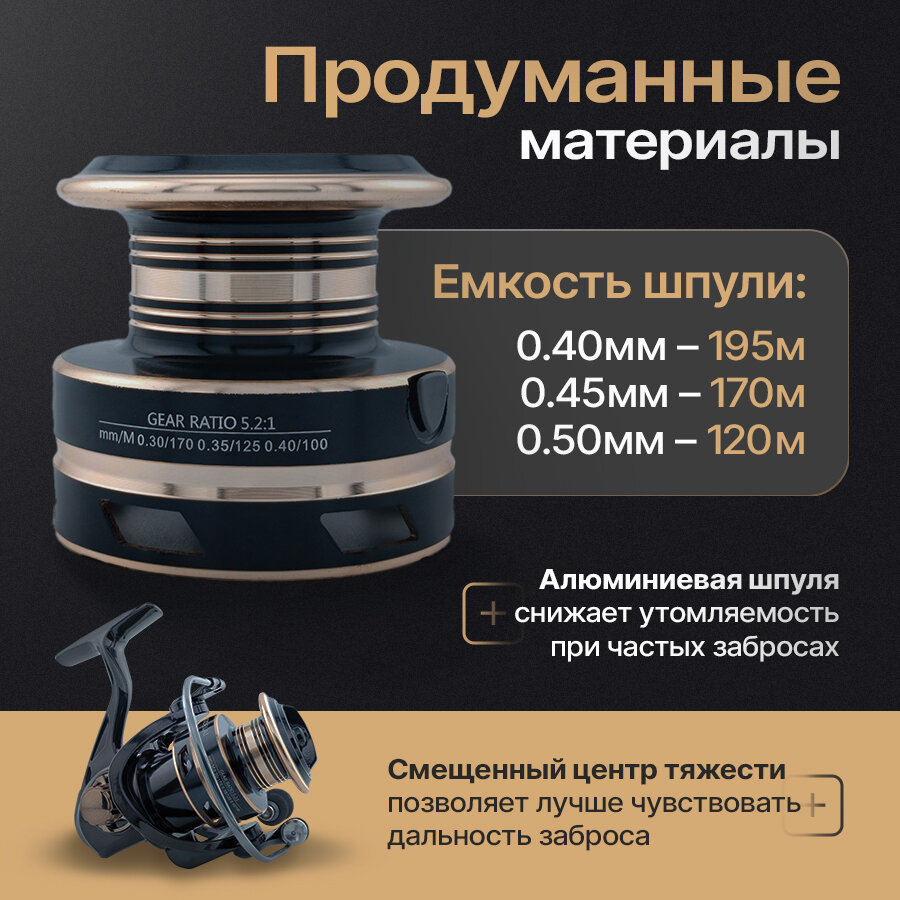 Катушка рыболовная Mifine DARKAR 2000F (4 подшипника) новинка 2022 года / Для спиннинга / Безынерционная / Для фидера / Ловля щуки