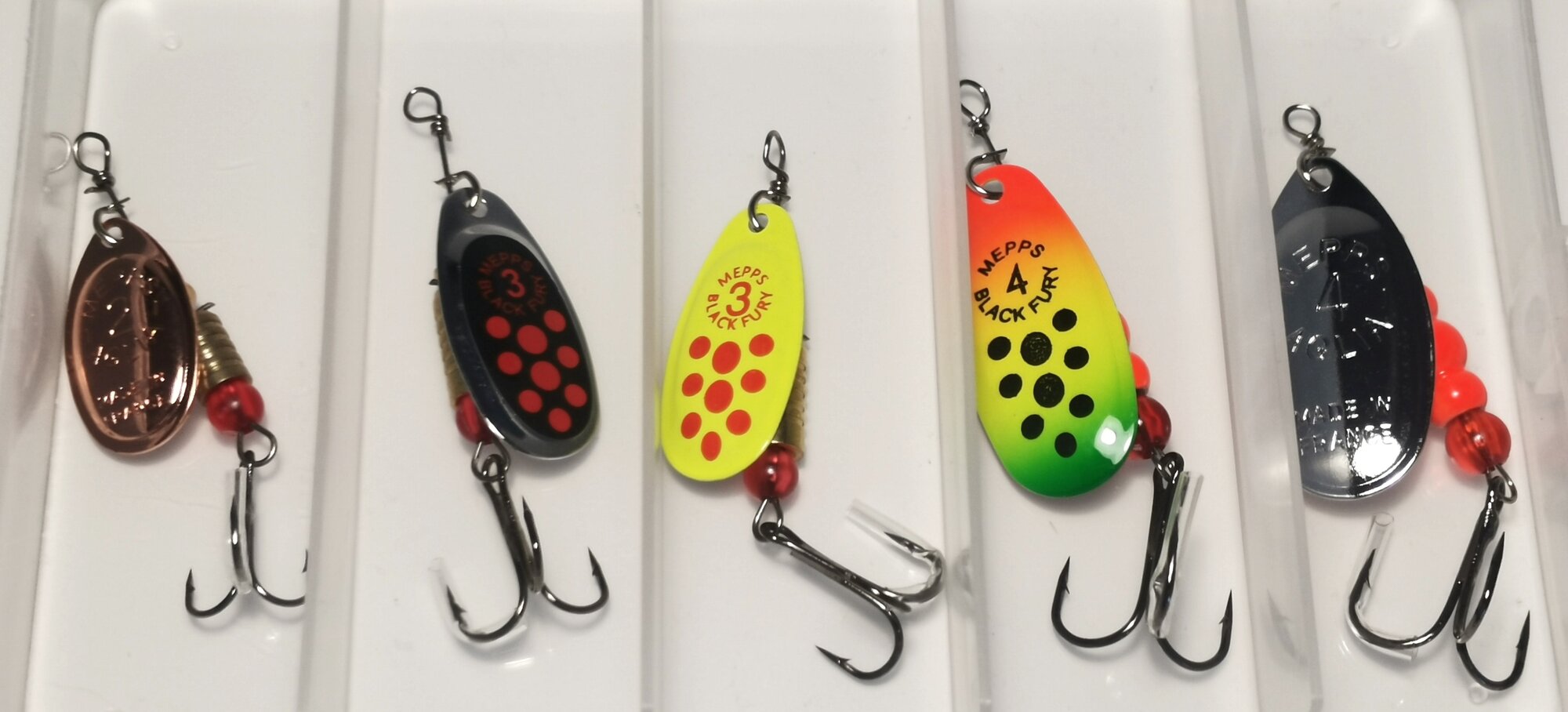 Набор из 5 блесен вертушек Mepps "Black Fury" на хищника №2 с подарком крючки Owner интересное: