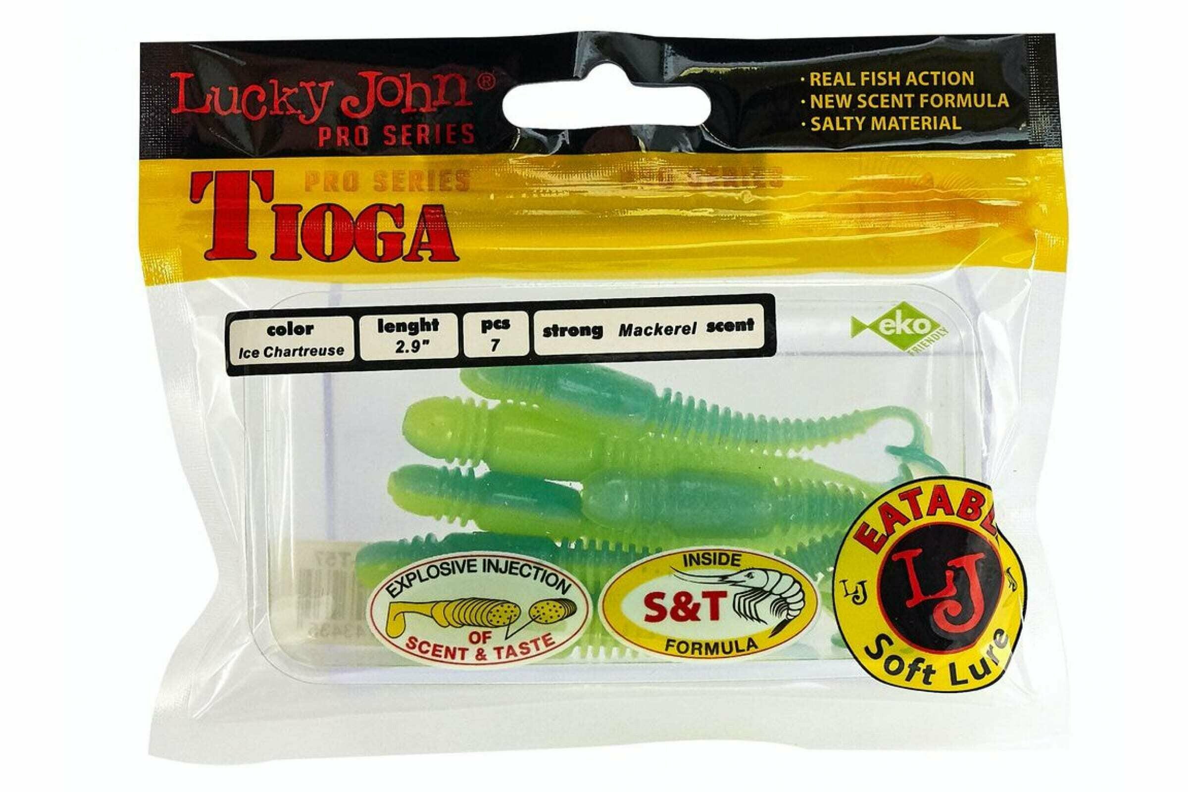 Силиконовая съедобная приманка Lucky John pro series TIOGA 2.9" Ice Chartreuse (7шт,7,37см)