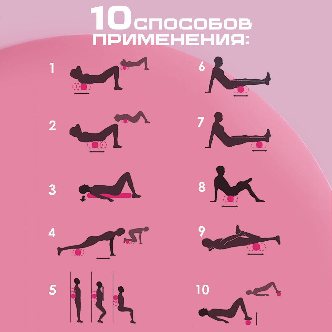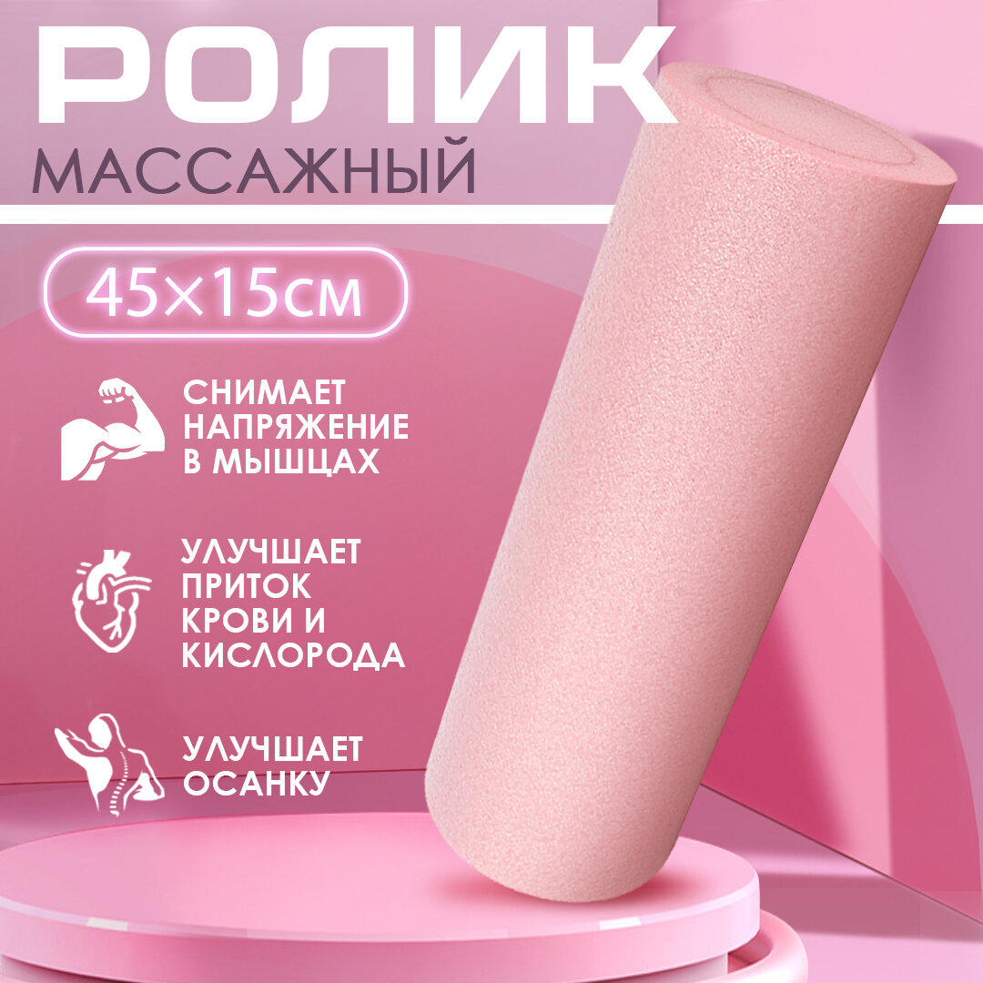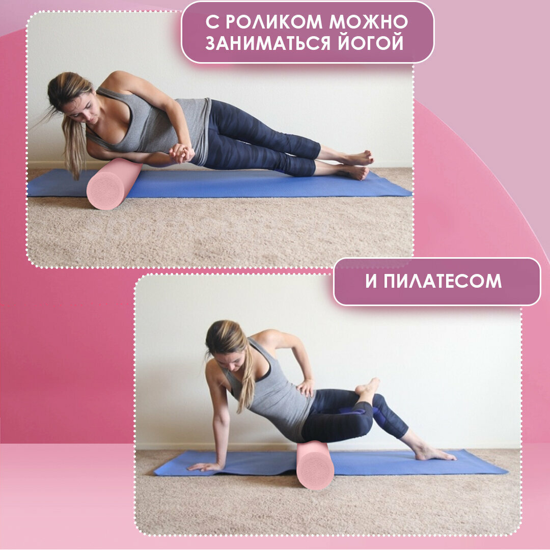 Ролик массажный 45х15 см розового цвета / Ролл для йоги, МФР и пилатеса / Валик для фитнеса интересное: