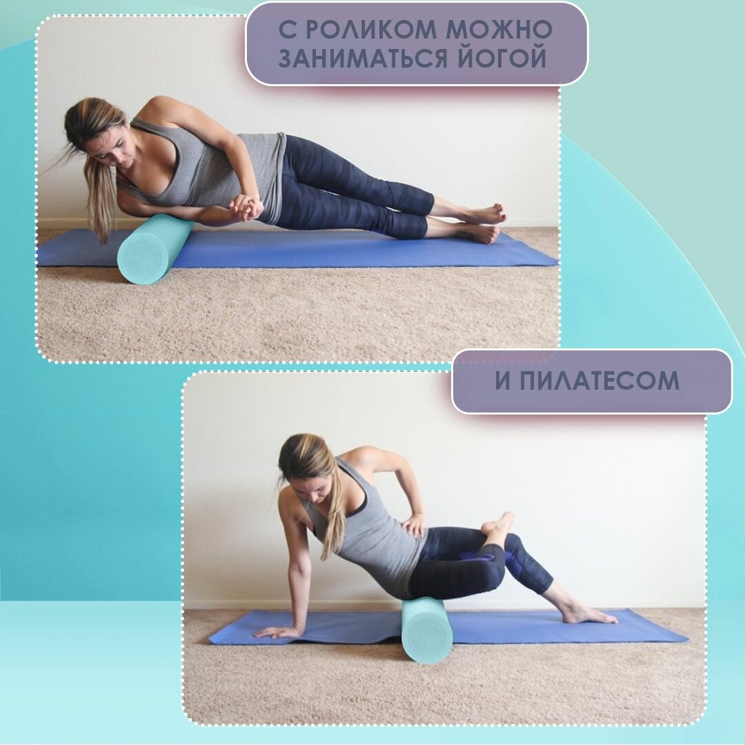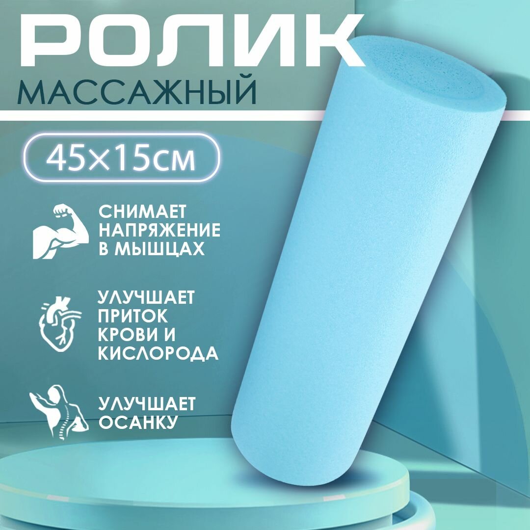 Ролик массажный 45х15 см голубого цвета / Ролл для йоги МФР и пилатеса / Валик для фитнеса интересное:
