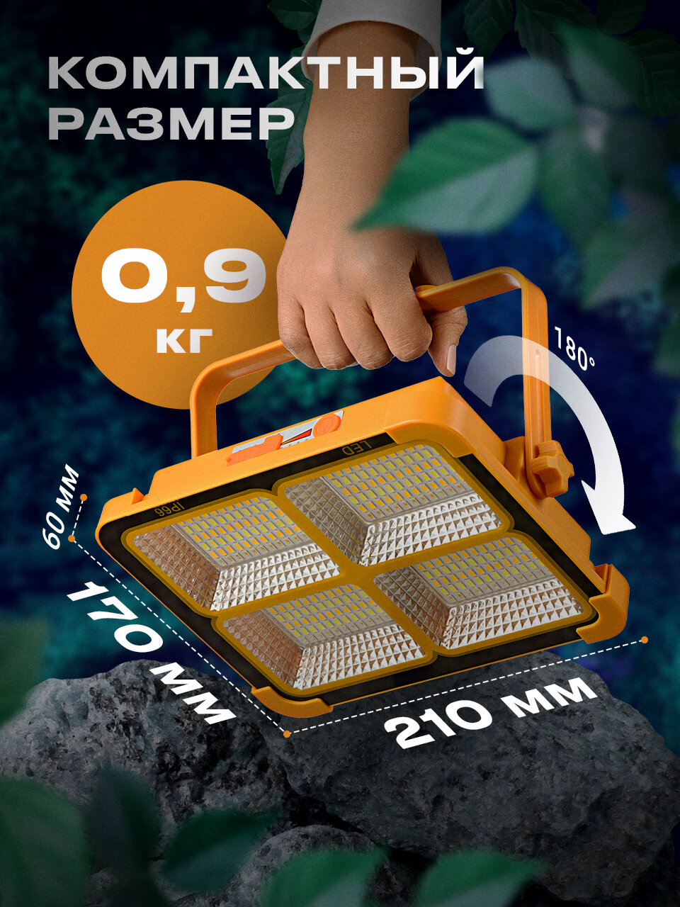 Светодиодный фонарь прожекторный, аккумуляторный многофункциональный IP54 15W