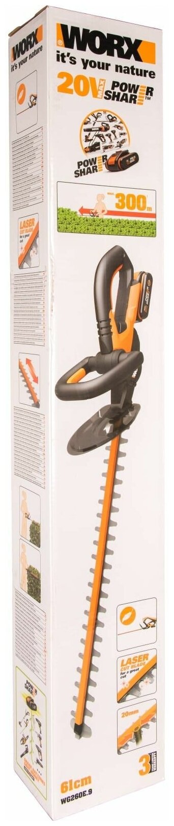 Кусторез аккумуляторный WORX WG260E.9, 61 см, 20В, без АКБ и ЗУ