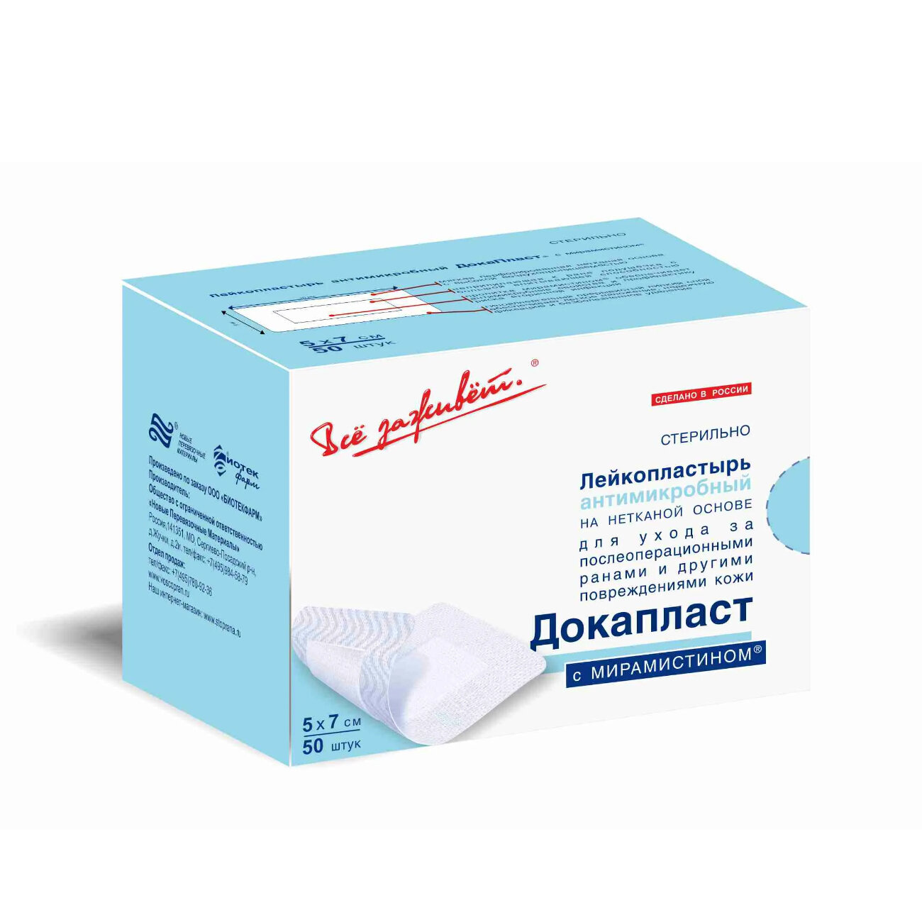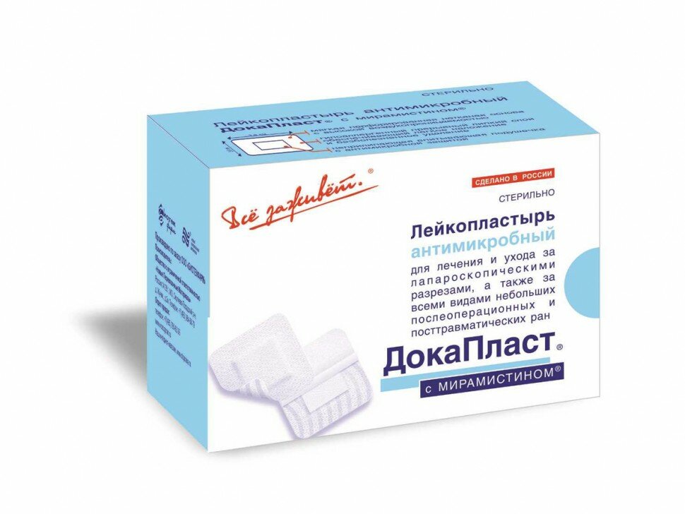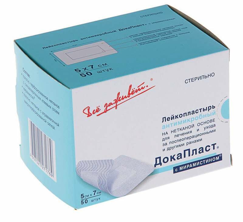 Лейкопластырь антимикробный стерильный с мирамистином Докапласт 5х7см 50шт интересное: