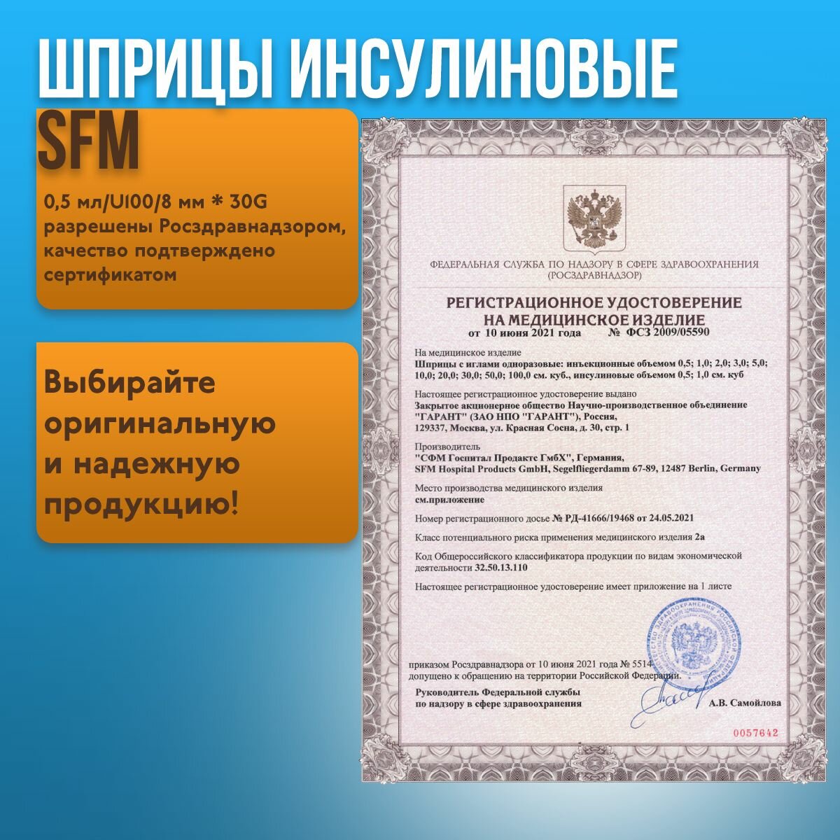 Шприц инсулиновый 0,5 мл со шкалой U-100 с интегрированной иглой 0,30х8 (30G) SFM 100 шт. интересное:
