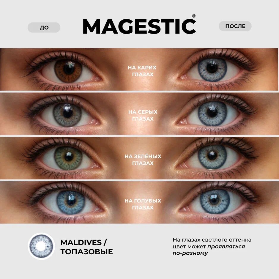 Ниже Вы можете прочитать отзывы на Цветные контактные линзы MAGESTIC топазовые Maldives, 1 пара 14.2, ознакомится с подробными характеристиками, посмотреть интересные обзоры и фотографии на Цветные контактные линзы MAGESTIC топазовые Maldives, 1 пара 14.2.