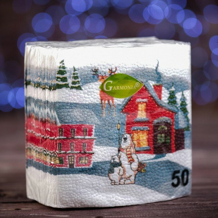 Новогодние салфетки бумажные Гармония цвета «Домики», 24х24 см, 50 шт интересное: