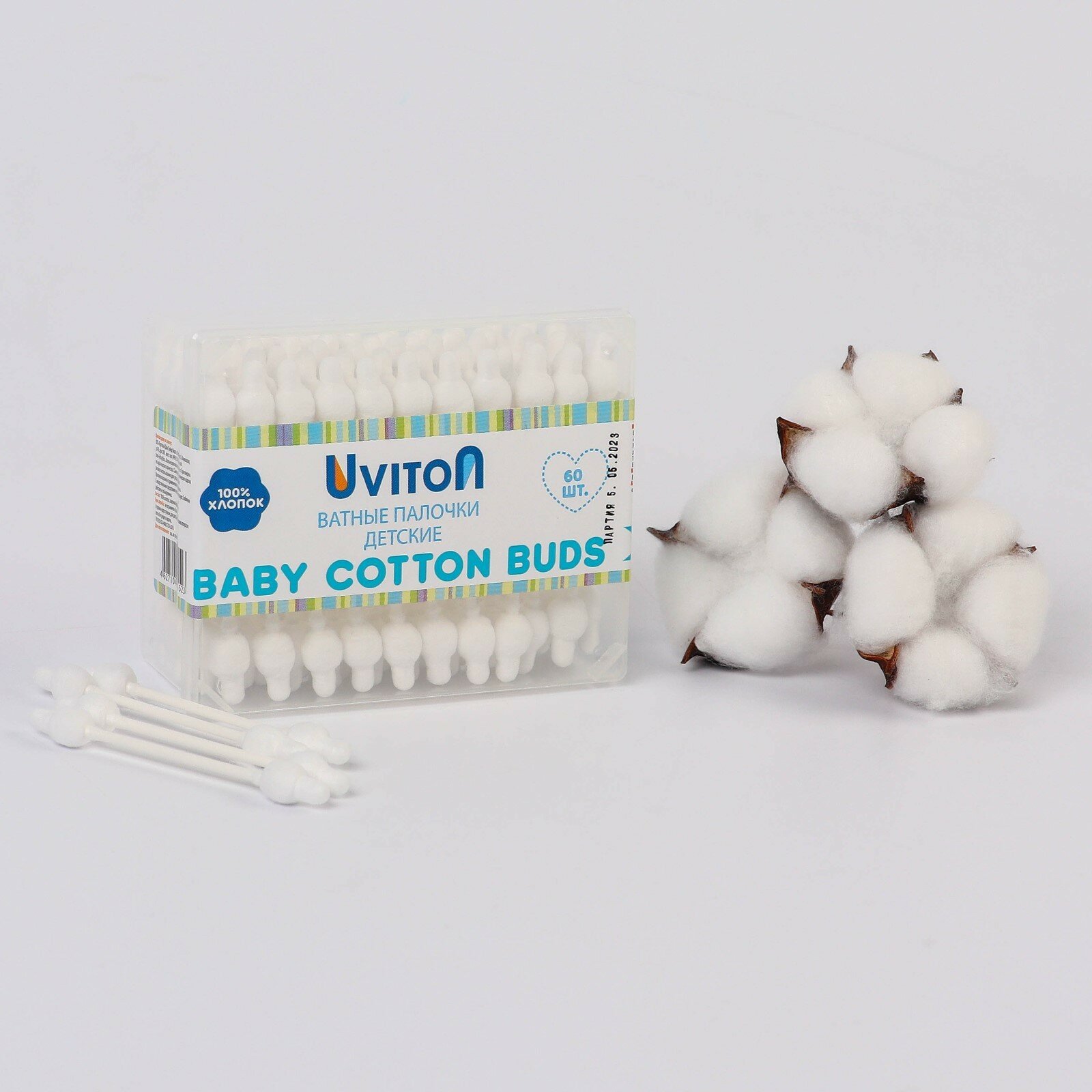 Купить Ватные палочки детские с ограничителем хлопок 60 штук