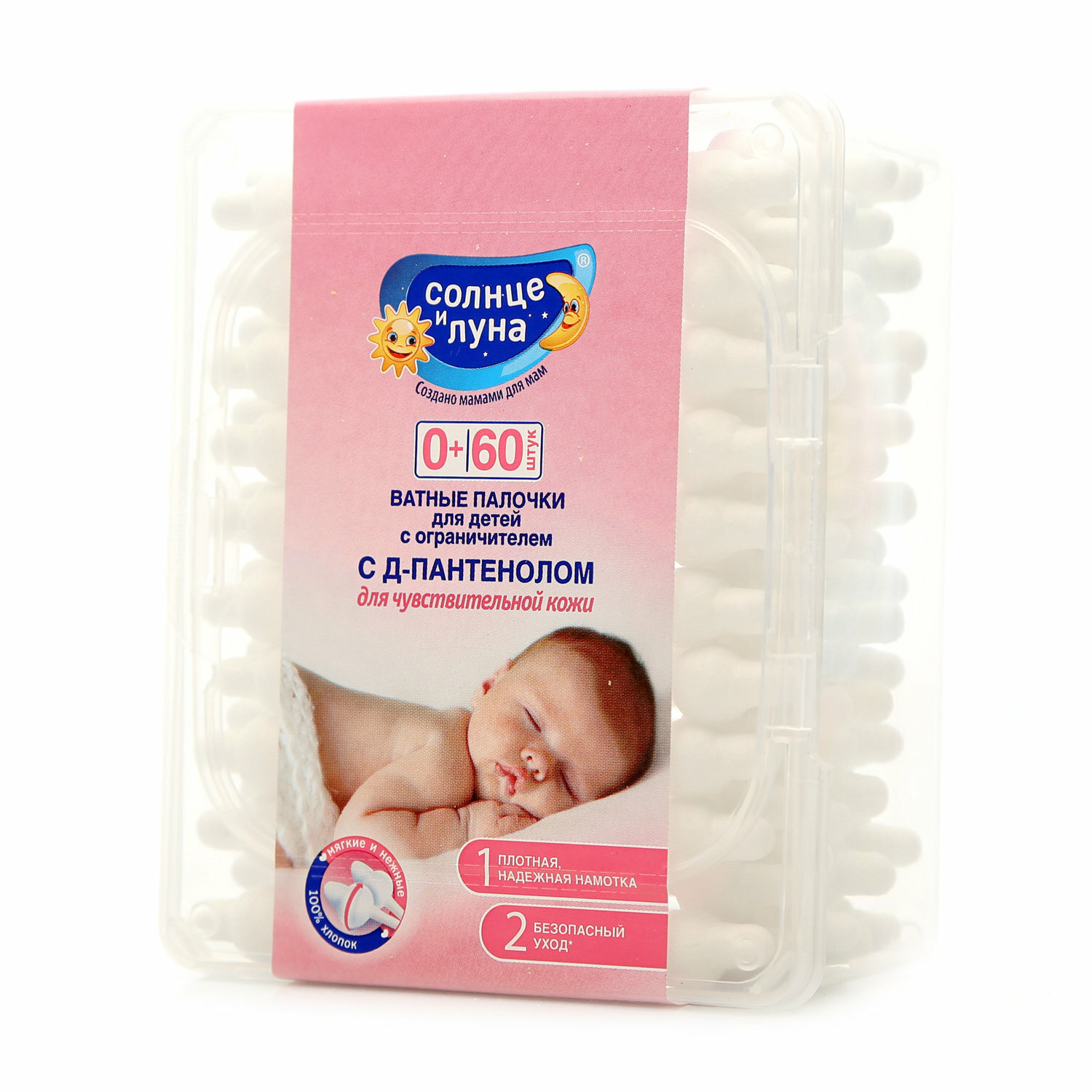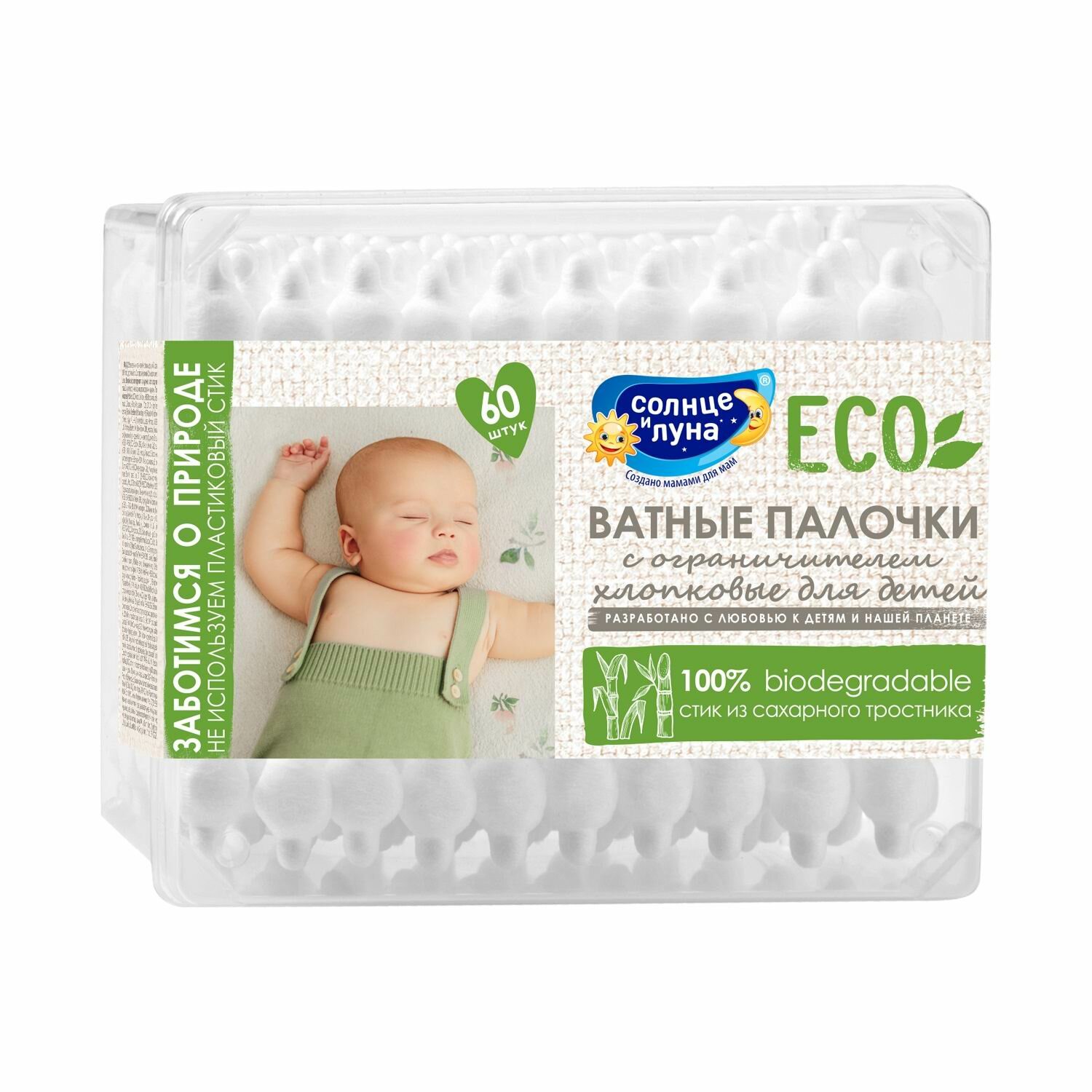 Палочки ватные Солнце и Луна с ограничителем, 60шт интересное: