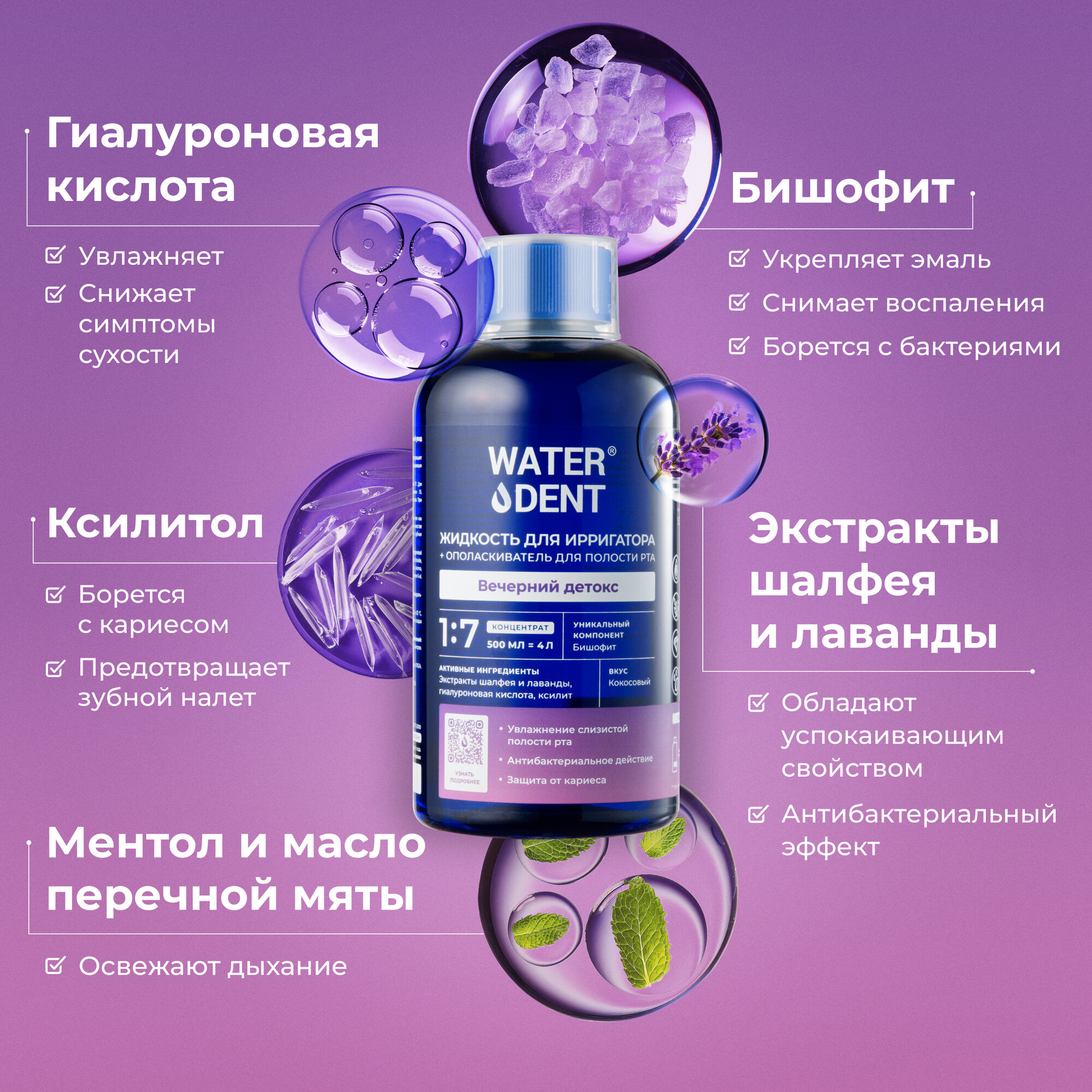 WATERDENT Жидкость для ирригатора / Вечерний детокс / Вкус кокоса / 500 мл интересное: