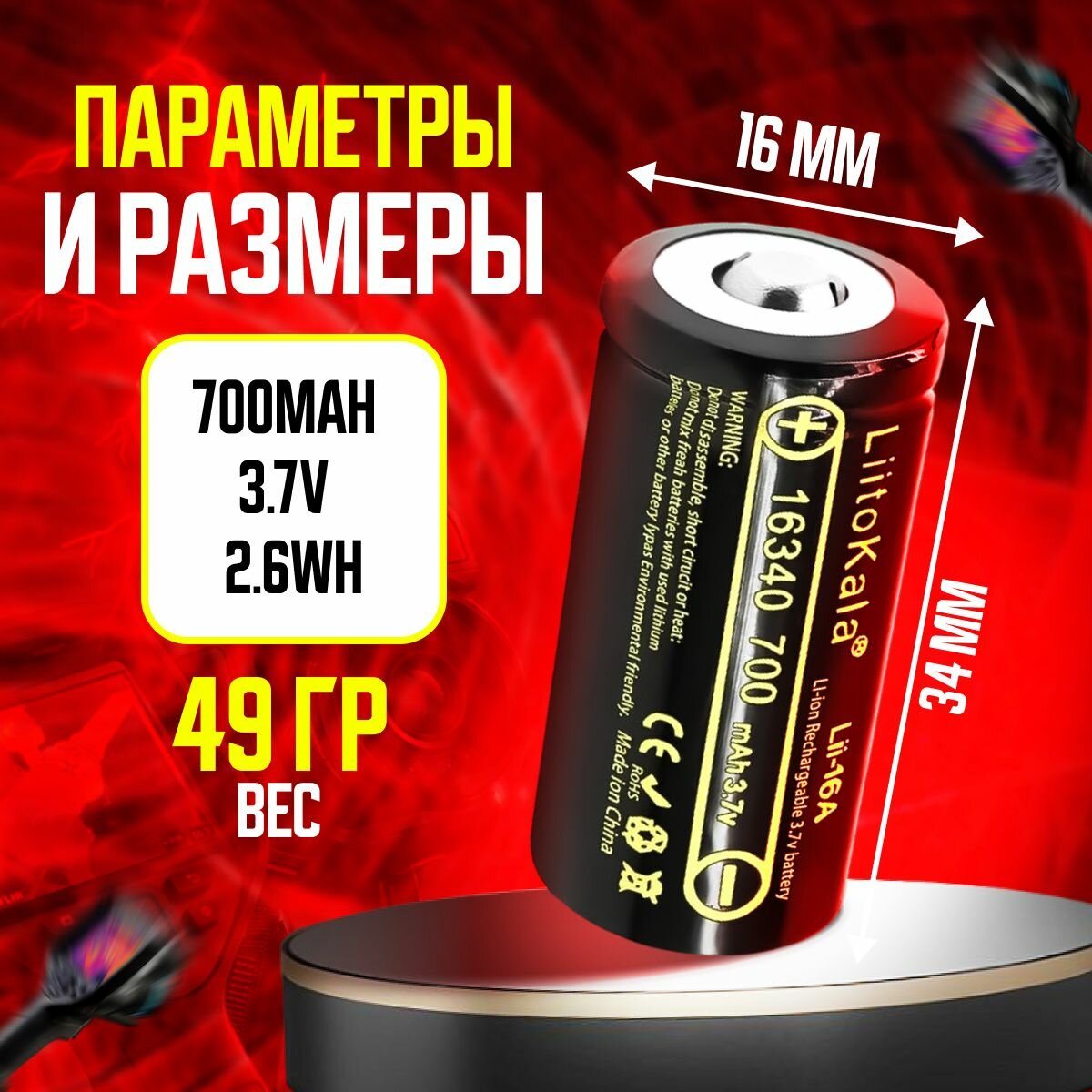 Аккумулятор LiitoKala Lii-16A 16340 700mAh, универсальная Li-Ion батарейка CR123A, литий-ионный аккумулятор 3.7 В