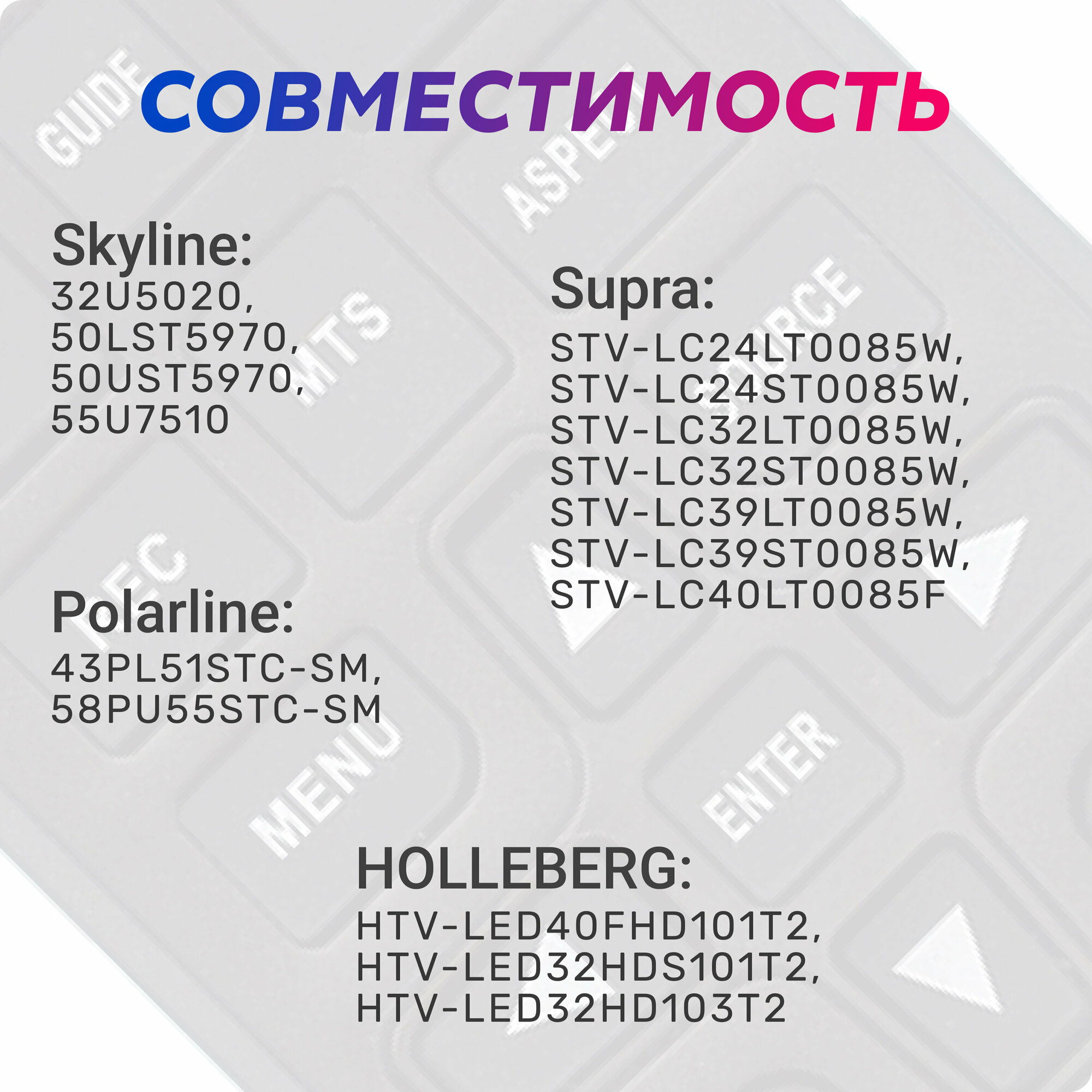 Пульт ДУ для телевизоров Holleberg/Polarline/Prestigio/SUPRA/Skyline, не требуется настройка