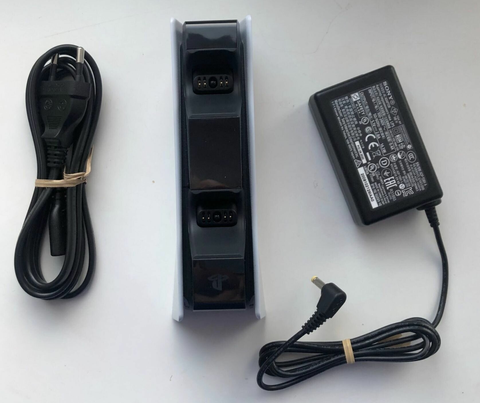 Зарядная станция Sony PS5 для двух (2) геймпадов DualSense (CFI-ZDS1) + кабель переходник на вилку для России
