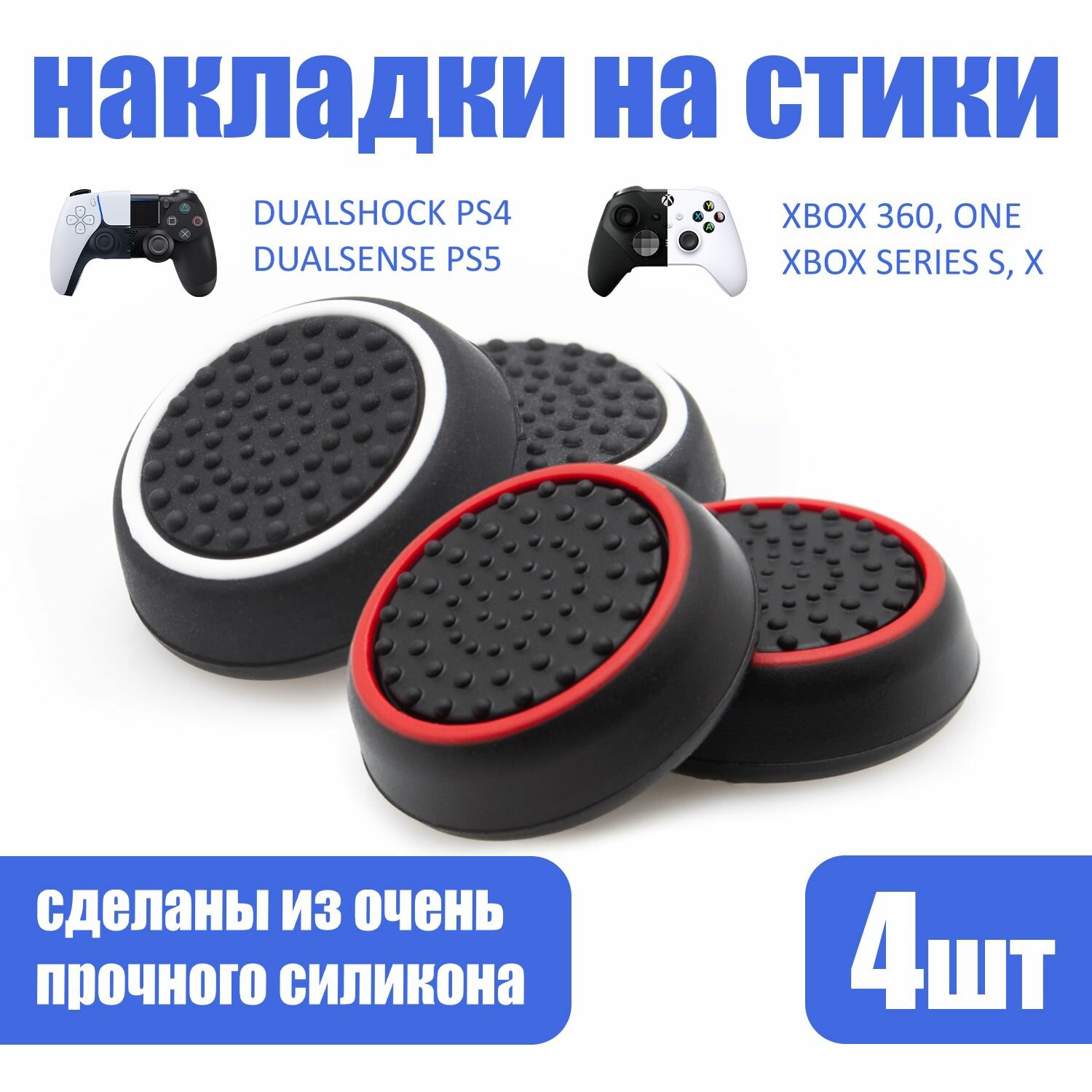 Накладки на стики для геймпада PlayStation, Xbox, PS5/ PS4, Xbox, One, Series X/ S - Красный, Синий 4шт