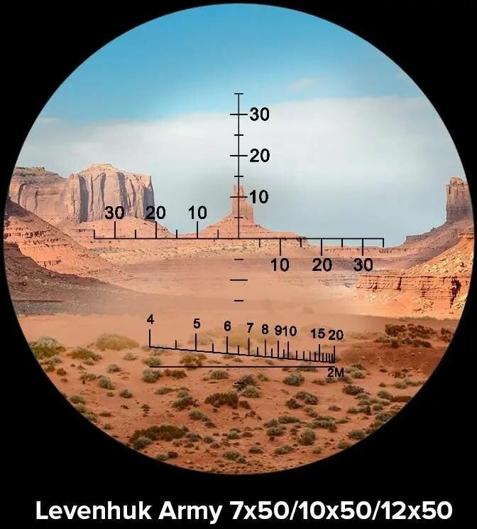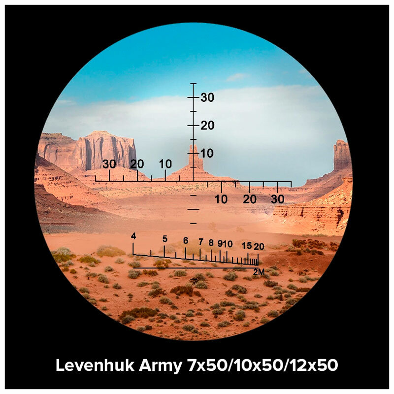 Бинокль Levenhuk Army 7x50 с угломерной сеткой и дальномерной шкалой армейский, полевой