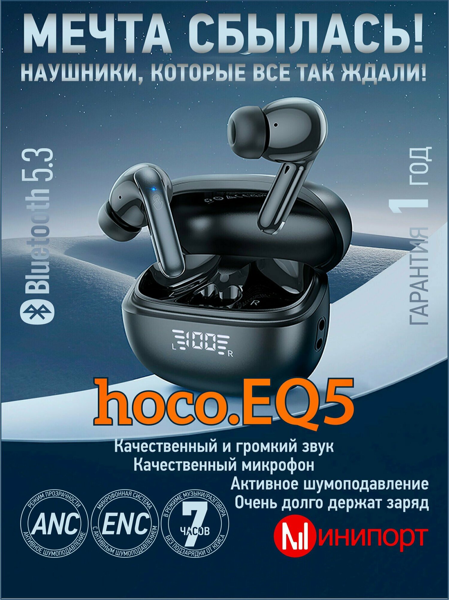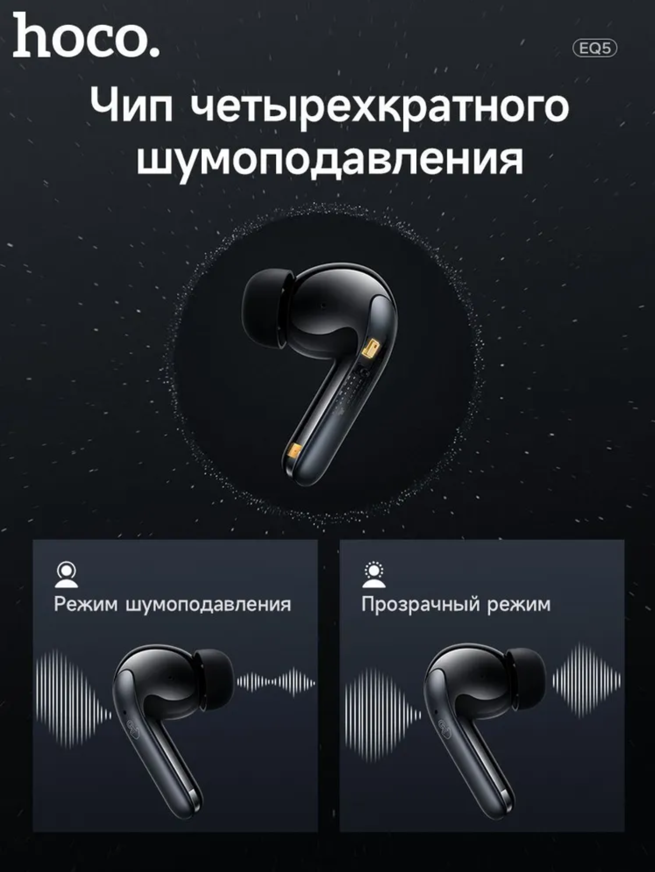 СохранитьБеспроводные наушники Hoco EQ5 ANC - с функцией шумоподавлением Черный интересное: