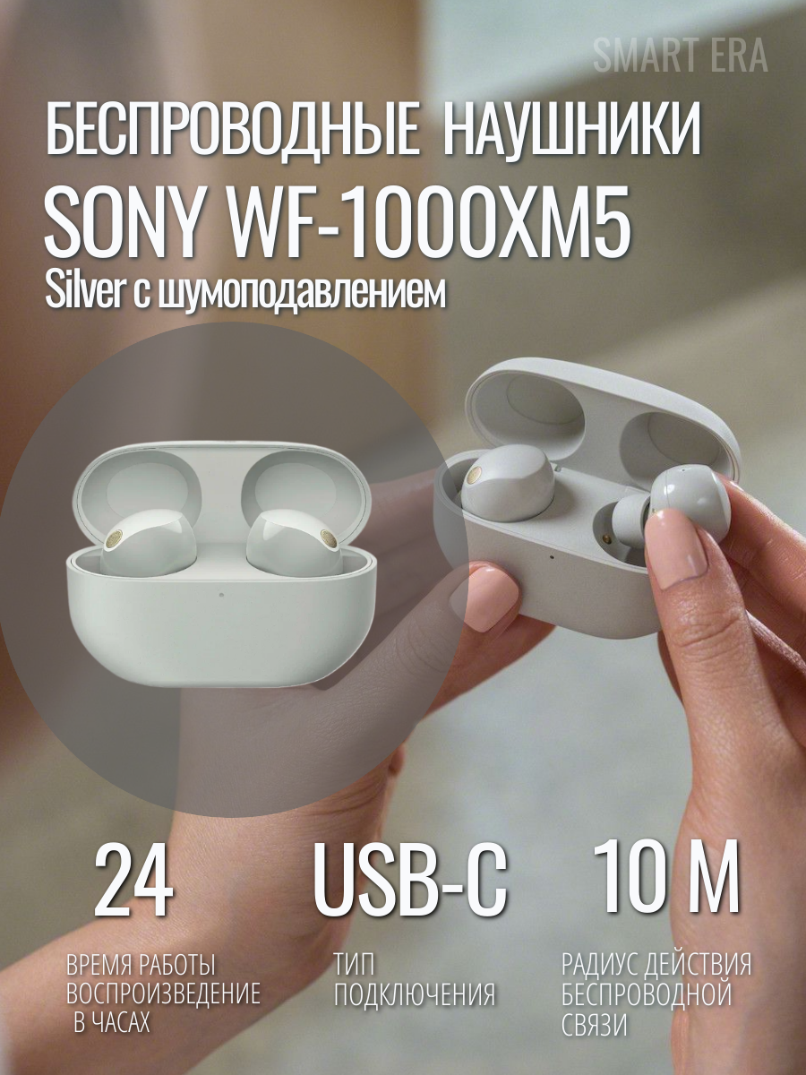 Наушники беспроводные Sony WF-1000XM5 с активным шумоподавлением, silver