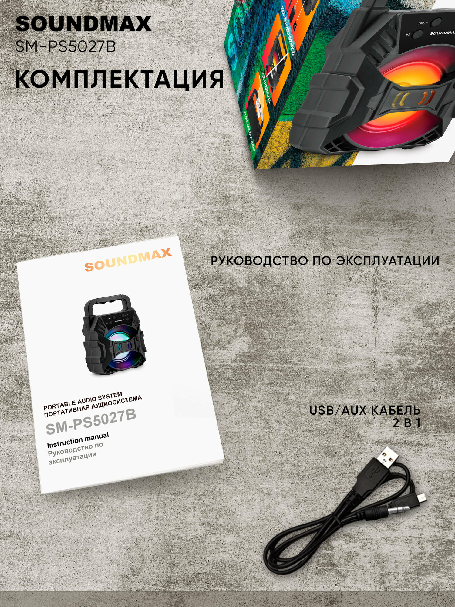 Колонка портативная SOUNDMAX SM-PS5027B(черный) интересное:
