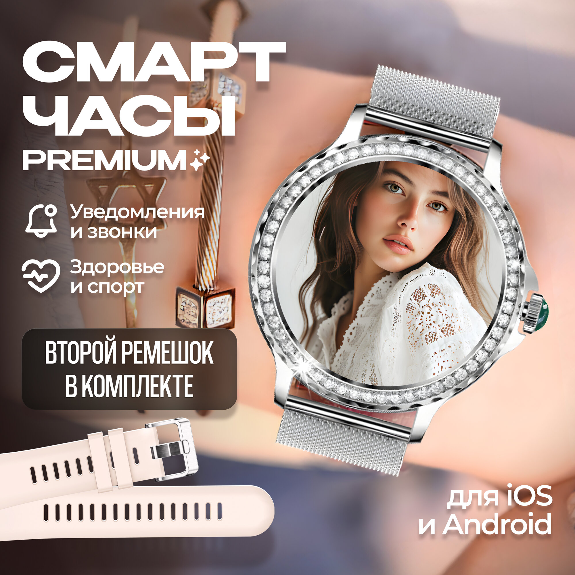 Kingwear Смарт часы женские круглые NX Special с двумя ремешками (Серебристый) интересное: