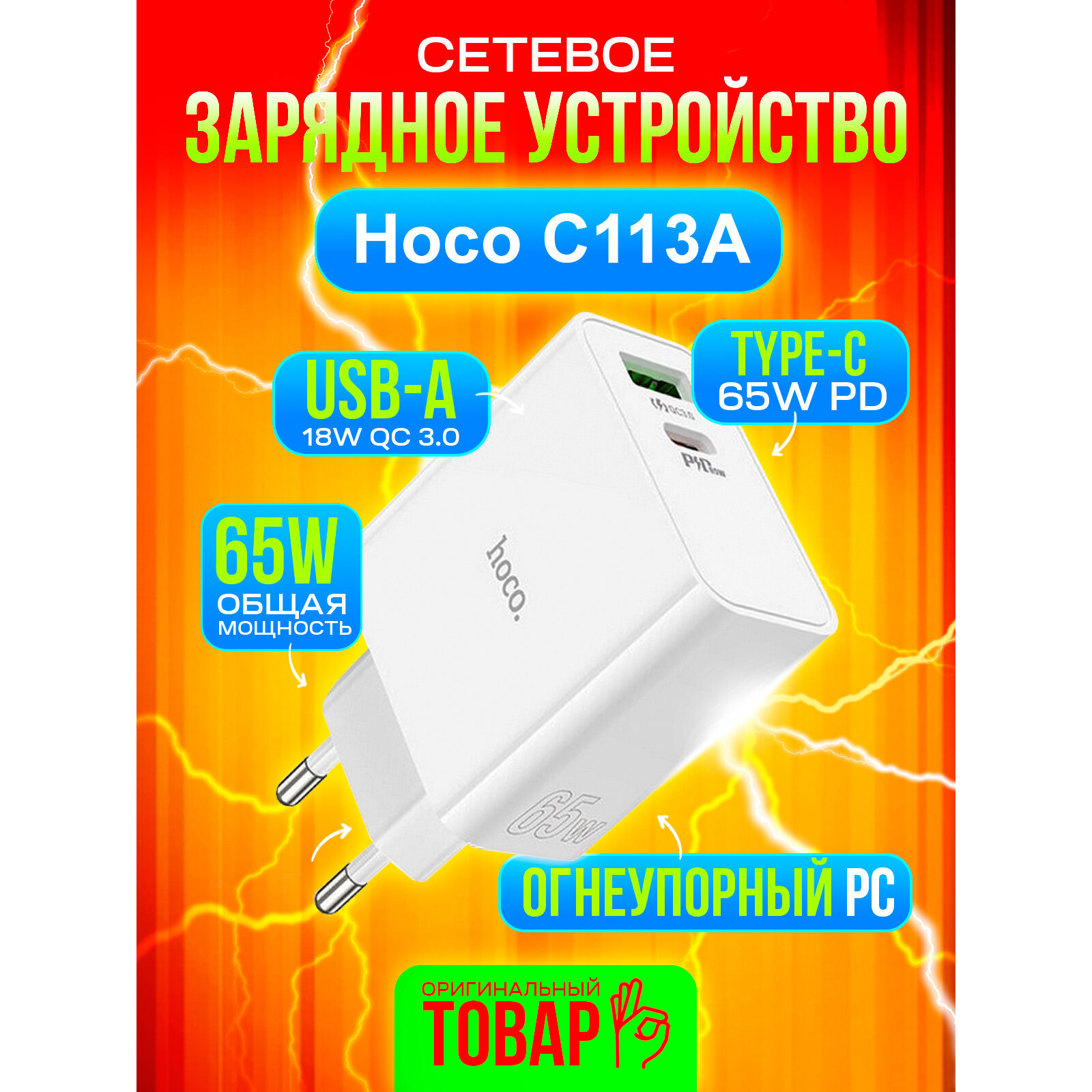 Сетевое зарядное устройство Hoco C113A, PD65W, белый интересное: