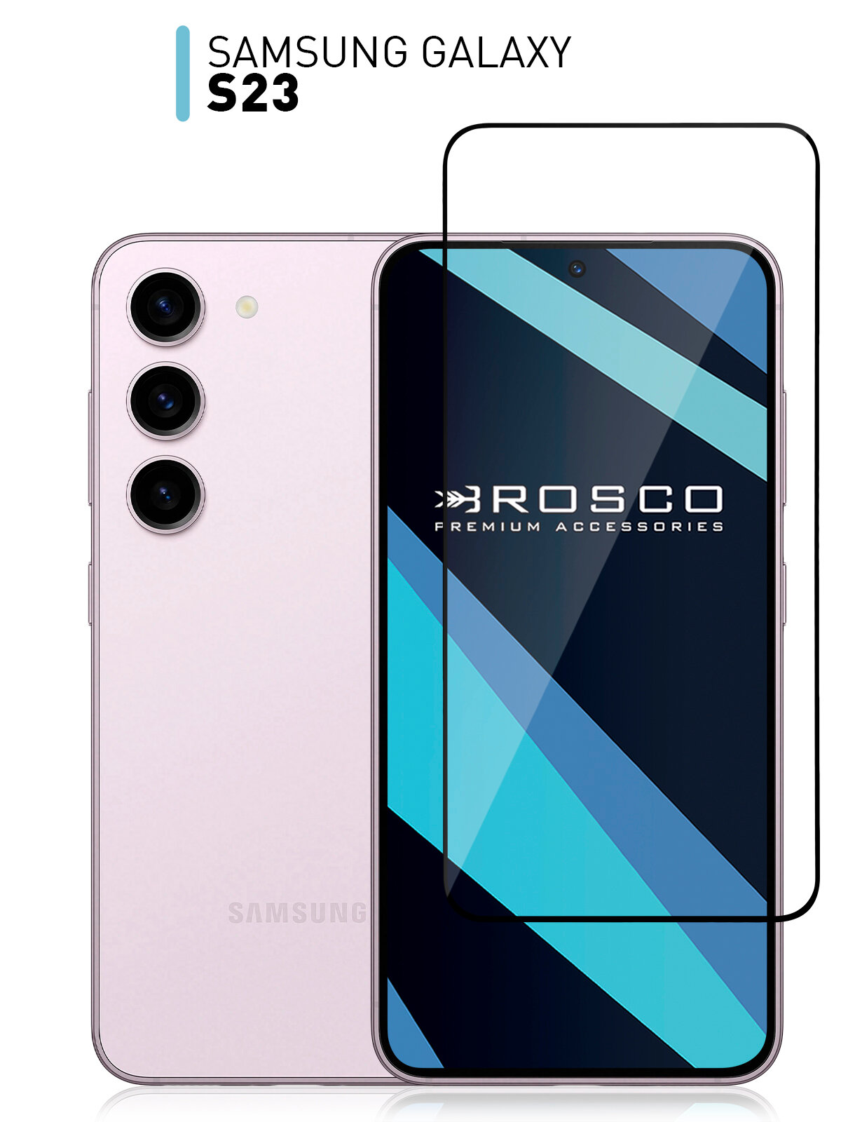 Защитное стекло Rosco на Samsung Galaxy S23 (Самсунг Галакси С23), глянцевое с чёрной рамкой, 1 шт
