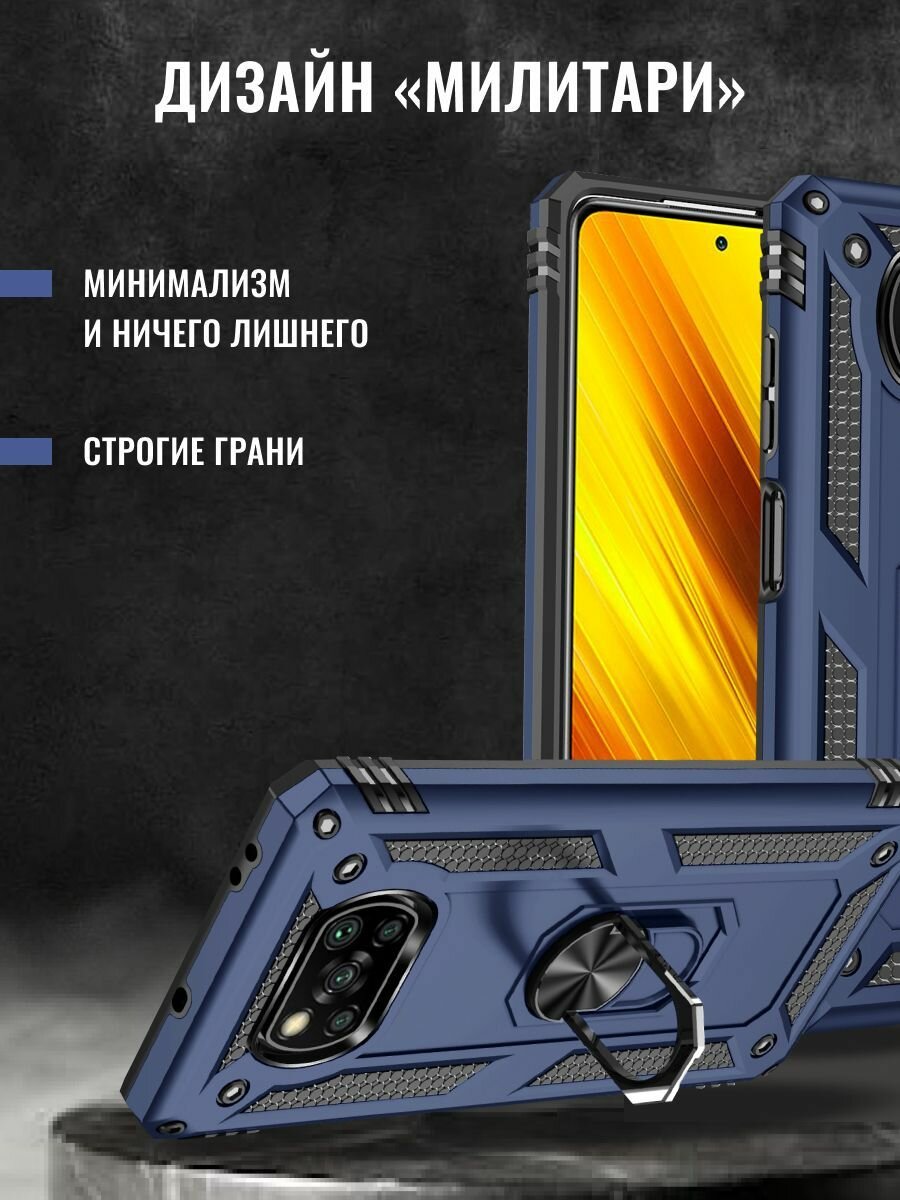 Купить Чехол на Poco X3 Pro / Poco X3 NFC защитный противоударный бампер на Поко Х3 Про / Поко Х3 НФС с кольцом синий