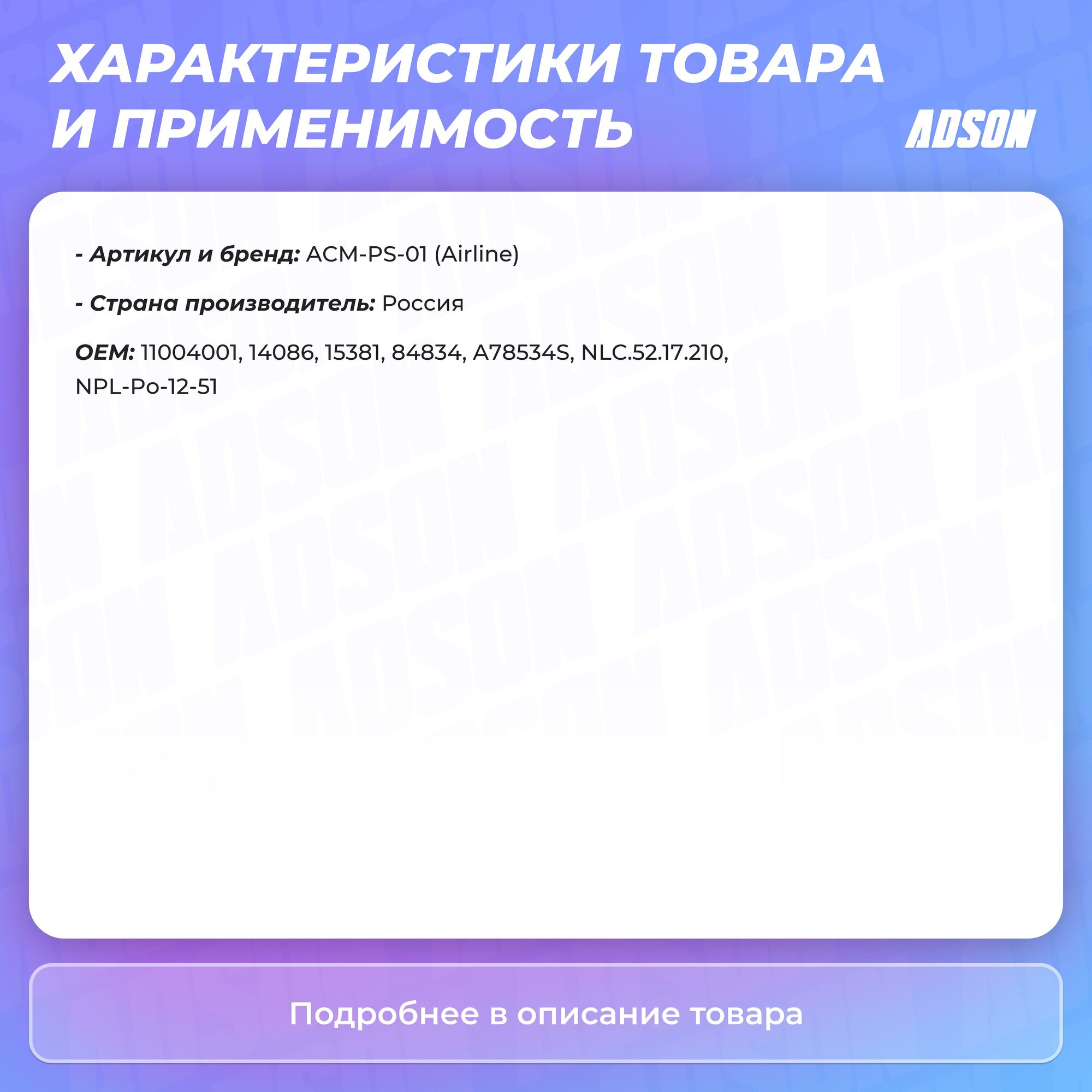 Деталь Airline ACMPS01 интересное: