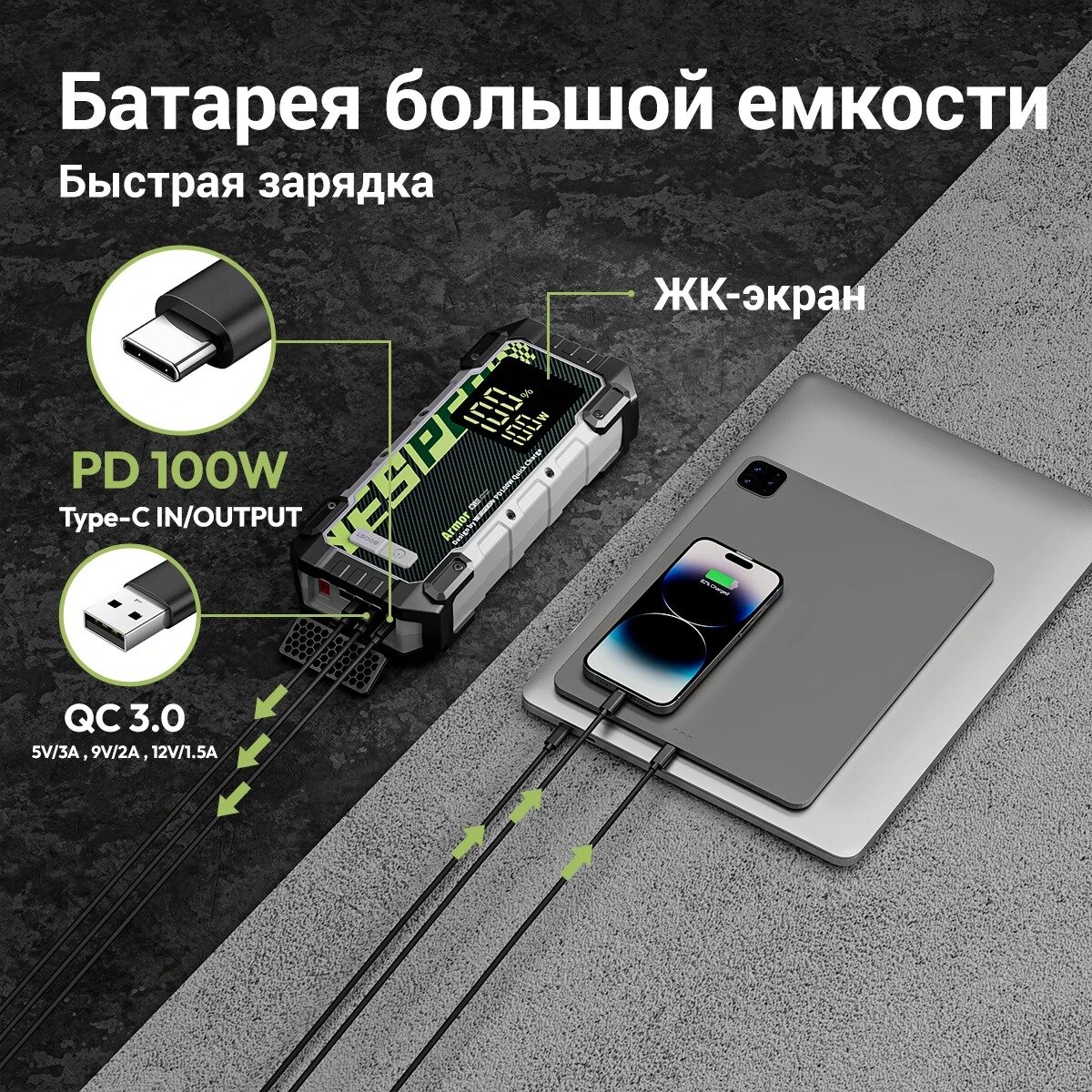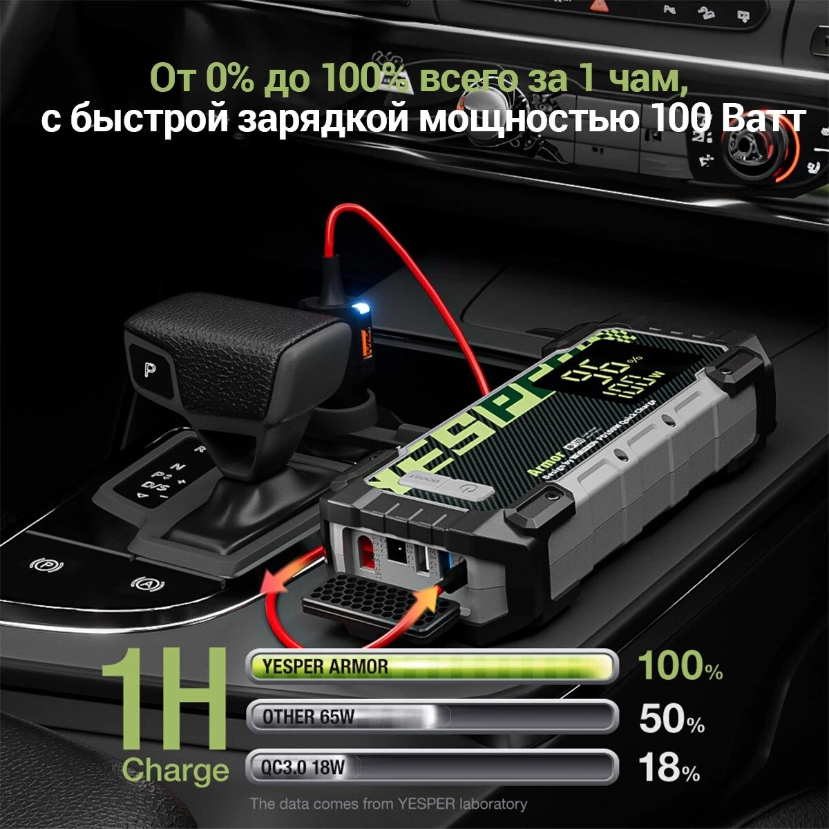Пусковое устройство бустер YESPER 24000 mAh 4000A 12 В. Портативное пуско-зарядное устройство для автомобиля.