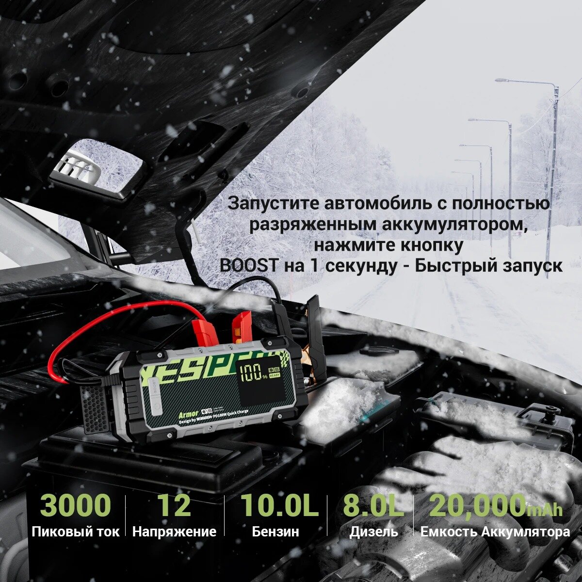 СохранитьПусковое устройство бустер YESPER 20000mAh 3000A. Портативное пуско-зарядное устройство для автомобиля. интересное: