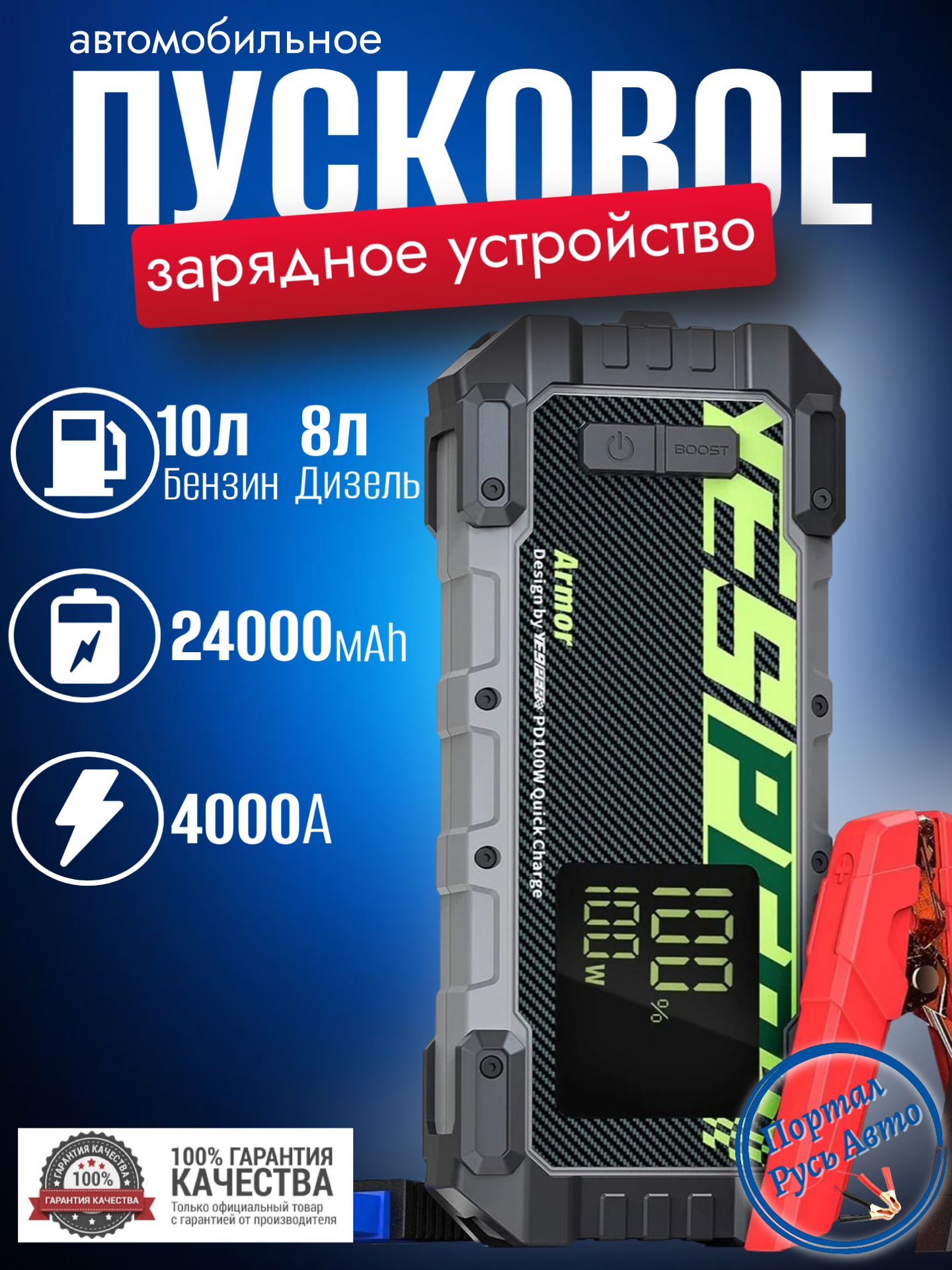 Купить Пусковое устройство бустер YESPER 24000 mAh 4000A 12 В. Портативное пуско-зарядное устройство для автомобиля.