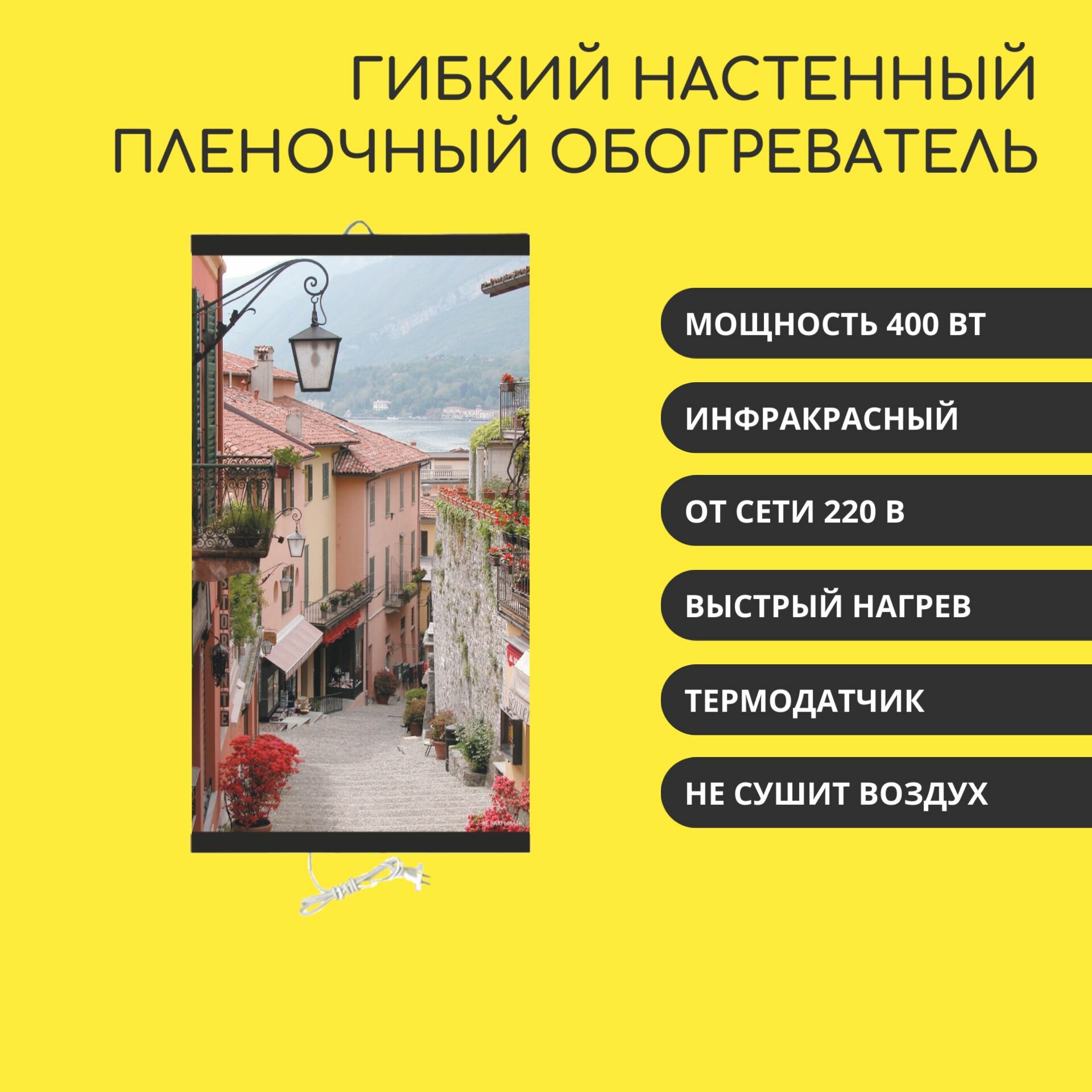 СохранитьГибкий настенный инфракрасный пленочный обогреватель для помещений "Курортный Городок" 60х105 см интересное: