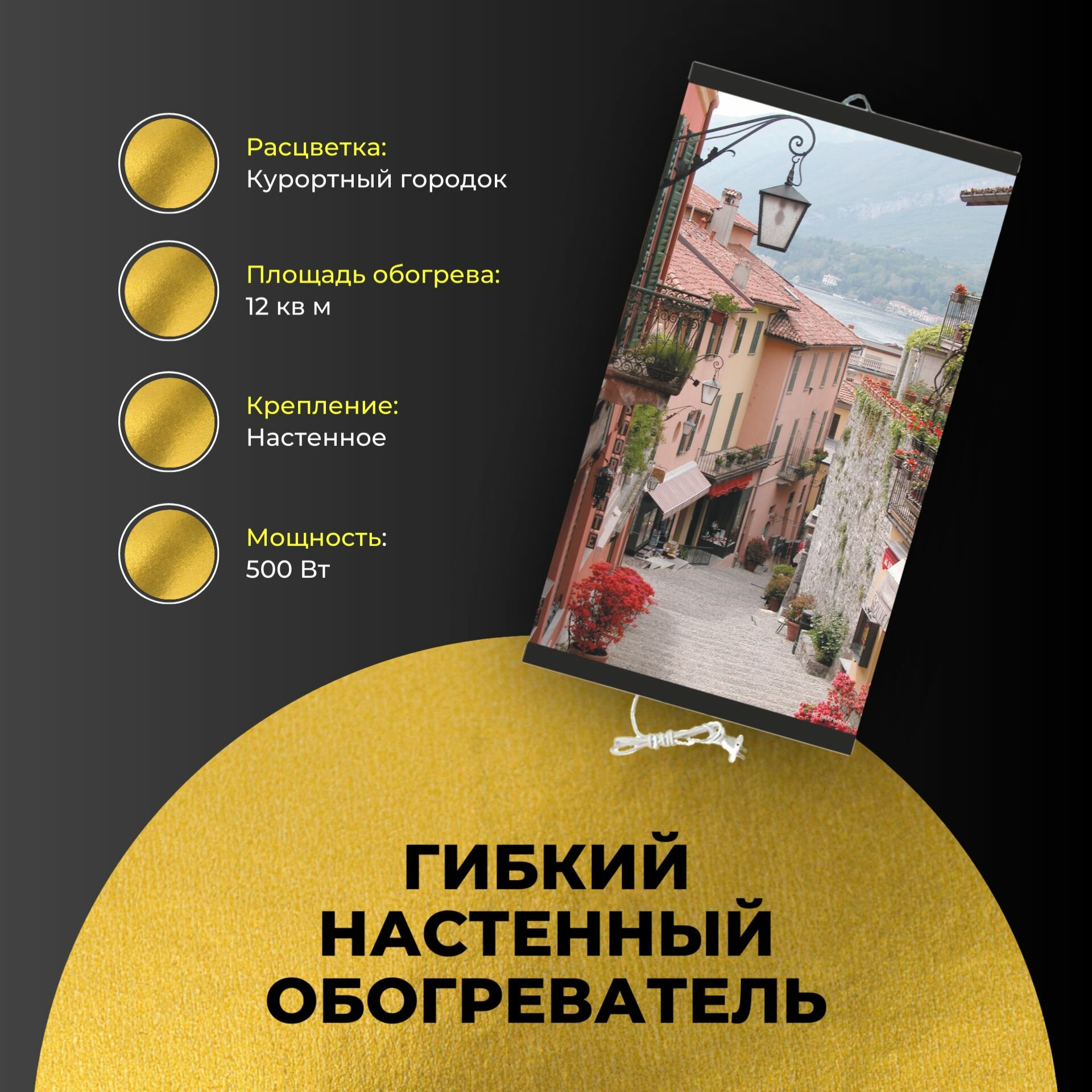 Купить Гибкий настенный инфракрасный пленочный обогреватель для помещений "Курортный Городок" 60х105 см