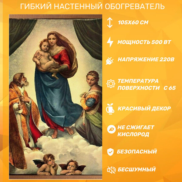 СохранитьИнтерьерная картина-обогреватель / Обогреватель настенный "Сикстинская мадонна" 60х105 см интересное: