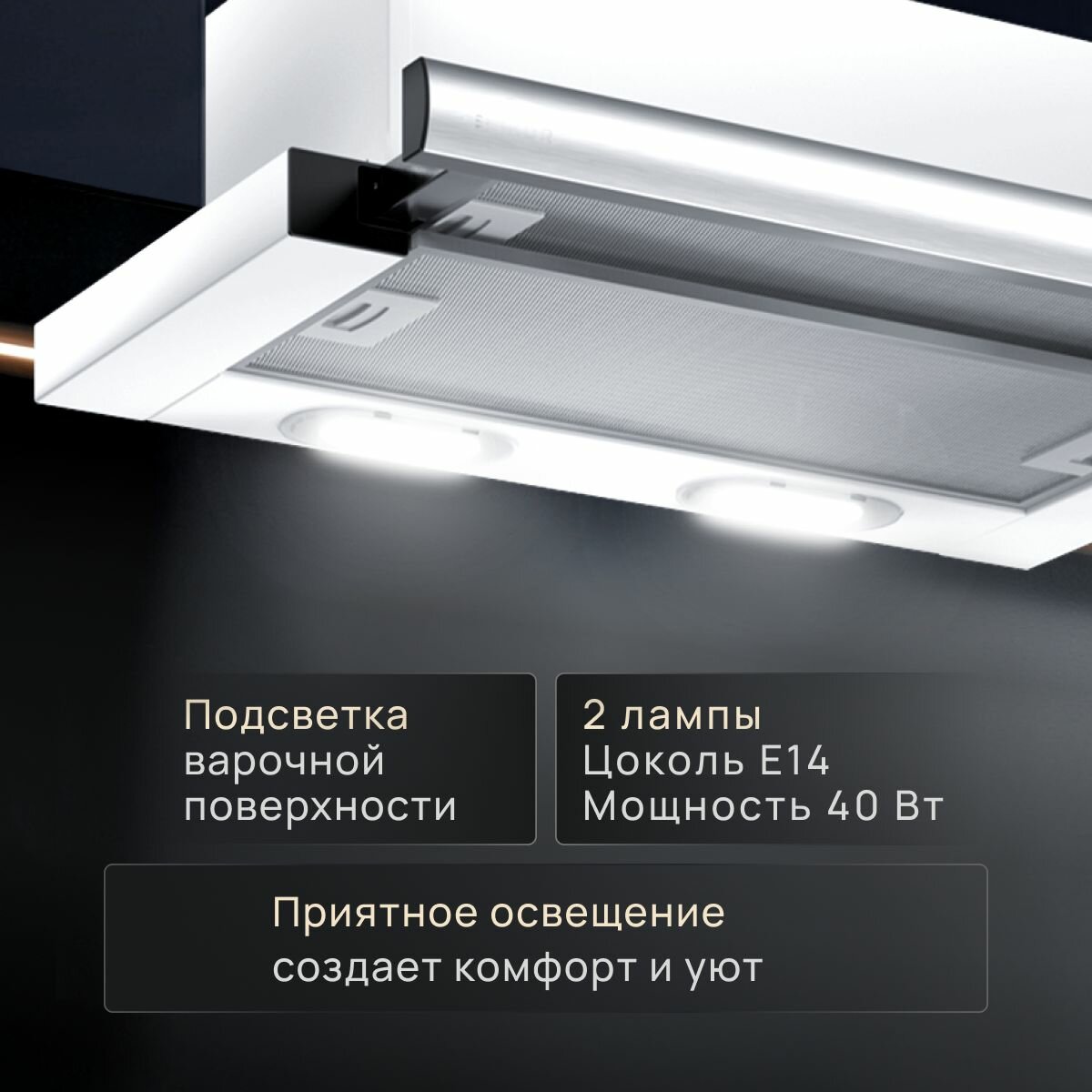 СохранитьВытяжка кухонная 45 см ELIKOR Интегра, встраиваемая, телескопическая, производительность - 400 м3/ч, управление клавишное, 2 скорости, лампы накаливания, белый / серебристый интересное: