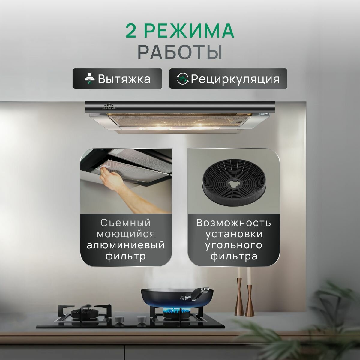 Вытяжка кухонная 50 см ELIKOR встраиваемая, врезной блок, производительность - 400 м3/ч, управление ползунковое, 3 скорости, светодиодные лампы, черный