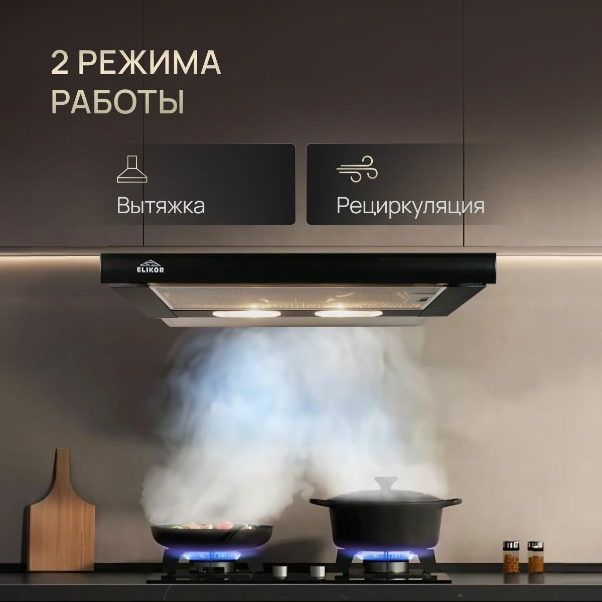 СохранитьВытяжка кухонная 60 см ELIKOR Интегра, встраиваемая, телескопическая, производительность - 400 м3/ч, управление клавишное, 2 скорости, лампы накаливания, черный интересное: