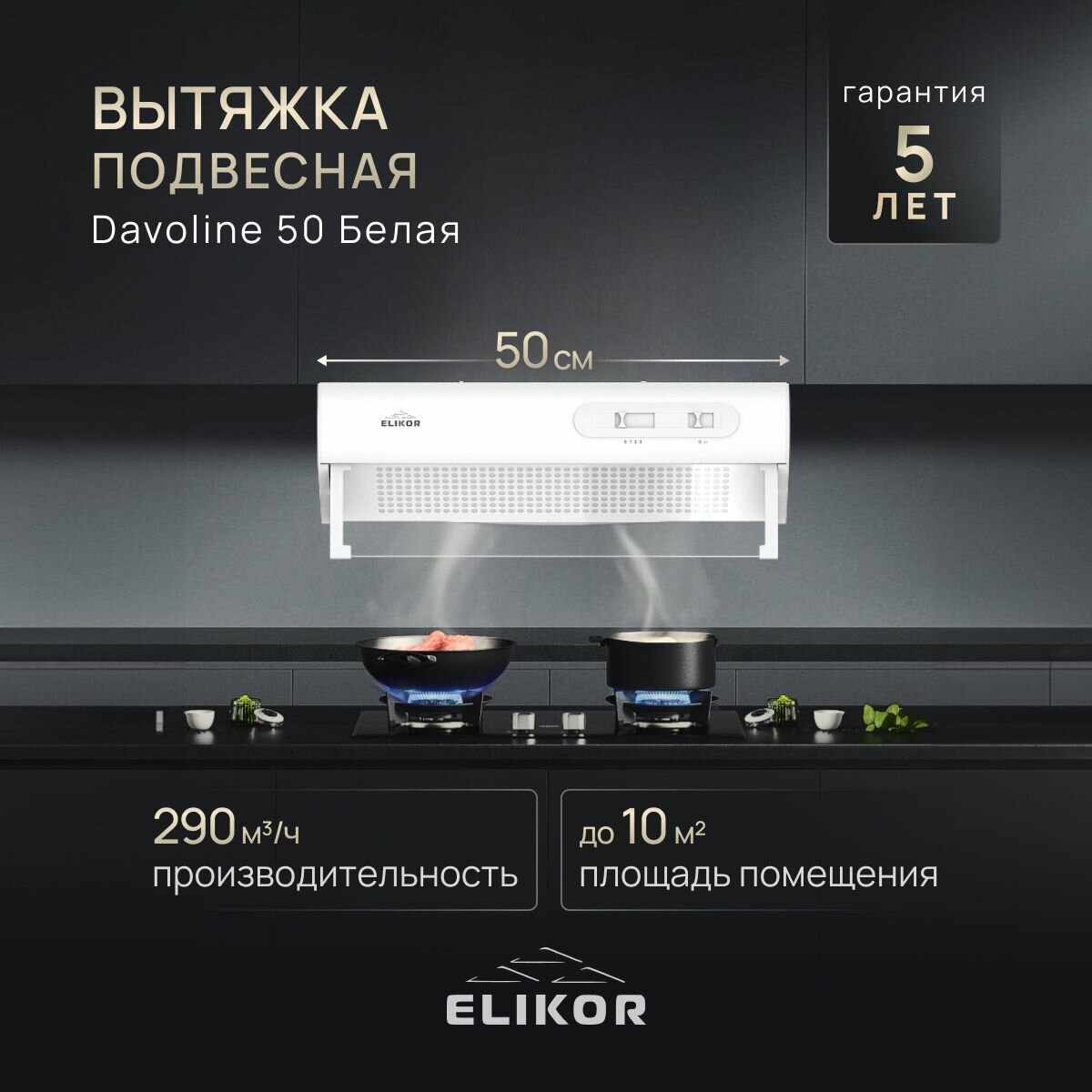 СохранитьВытяжка кухонная 50 см ELIKOR Davoline, встраиваемая, производительность - 290 м3/ч, управление ползунковое, 3 скорости, лампы накаливания, белый интересное:
