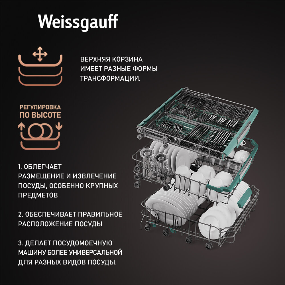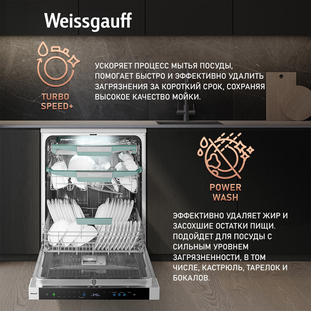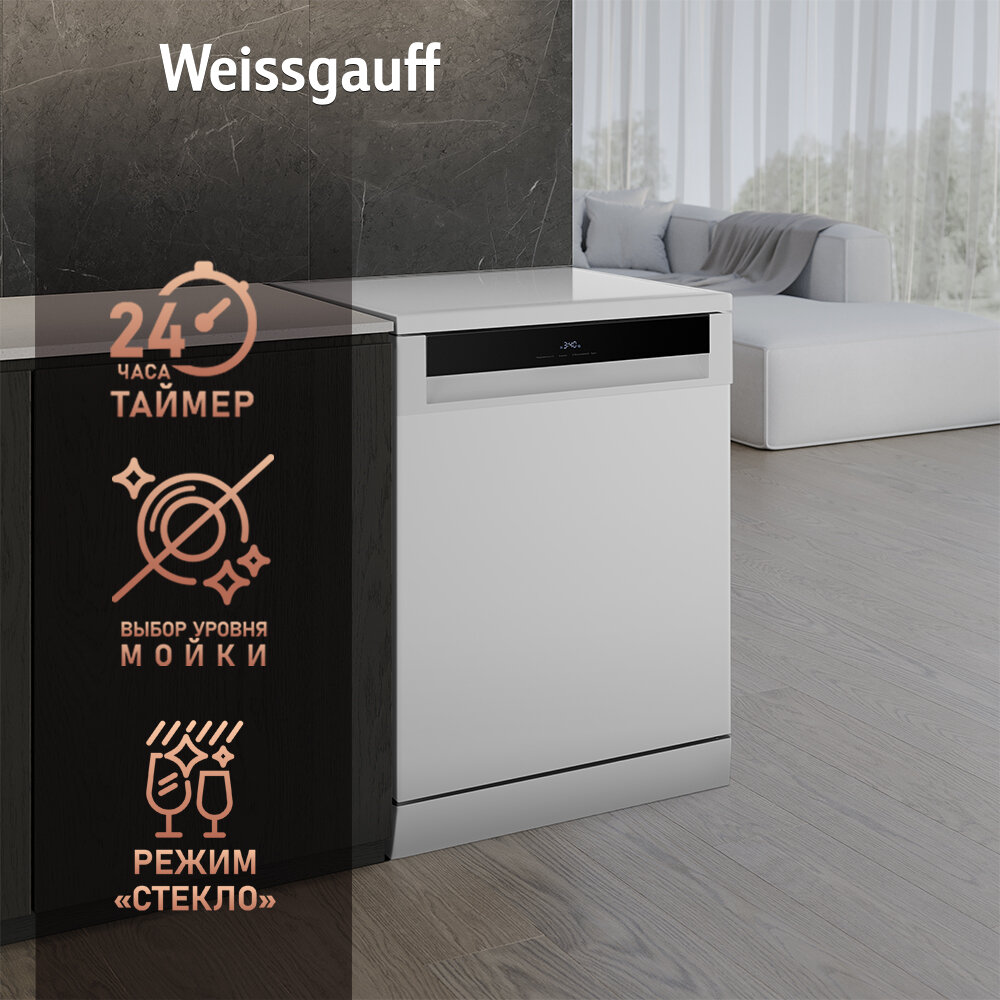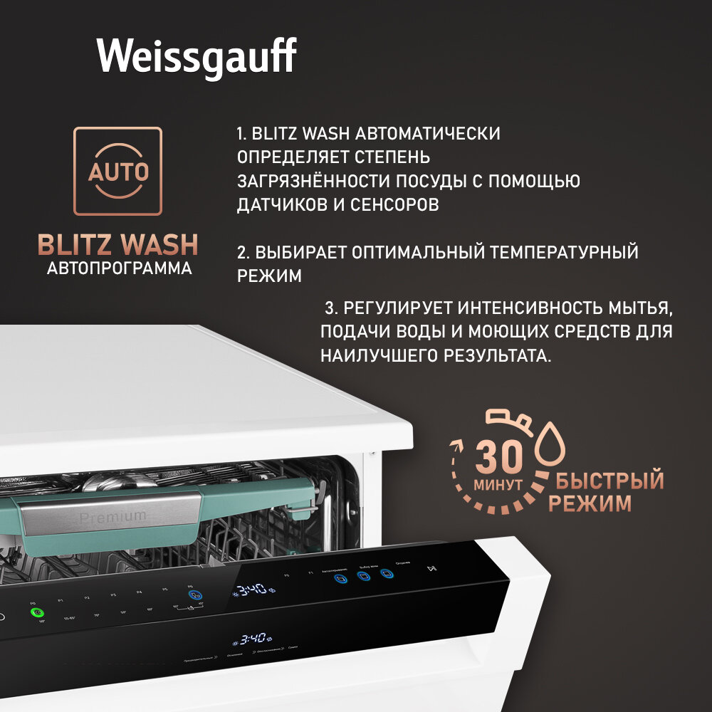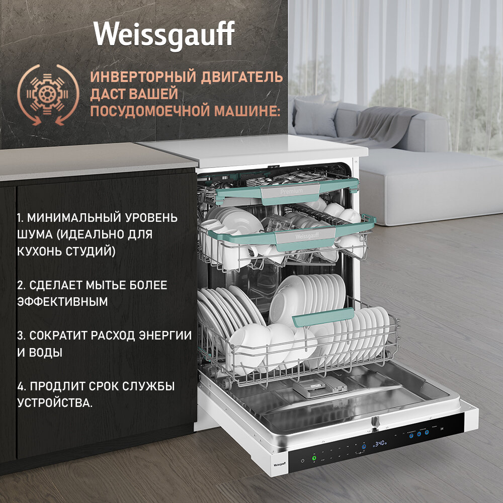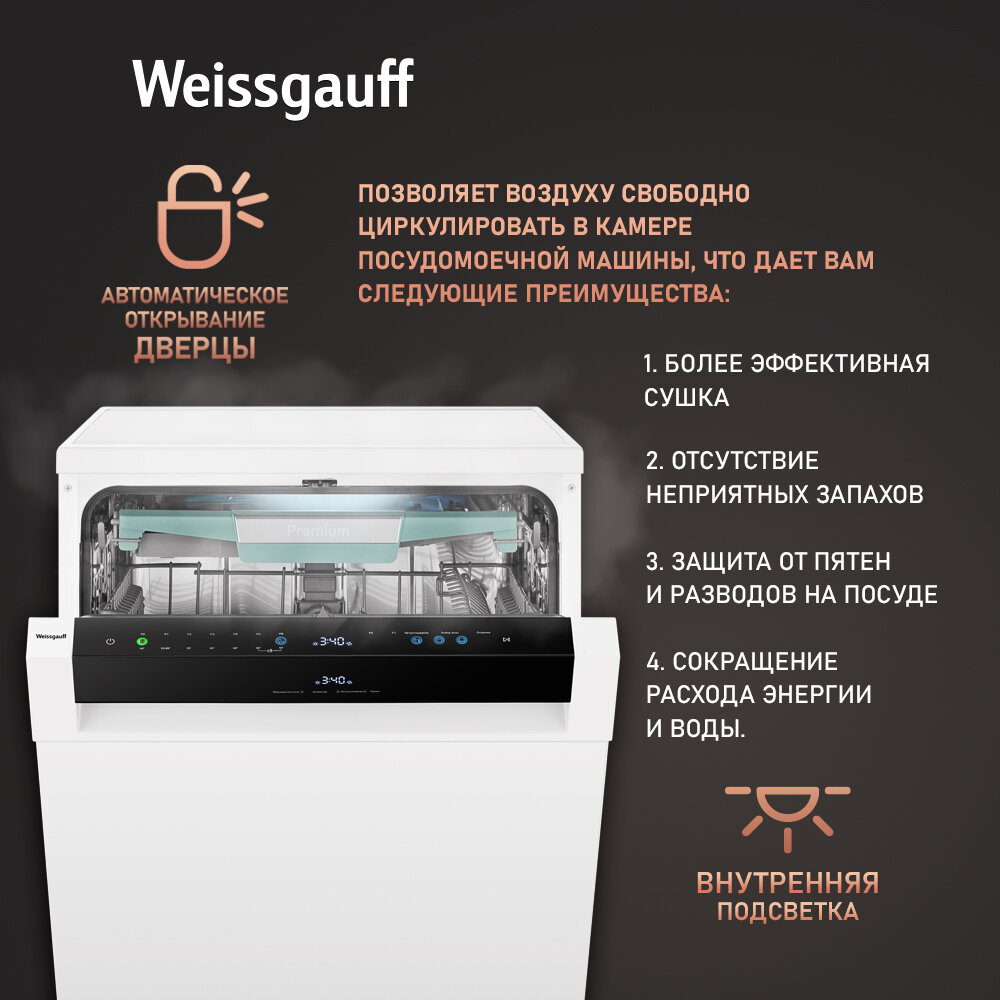 Посудомоечная машина с авто-открыванием Weissgauff DW 6114 Inverter Touch AutoOpen White интересное: