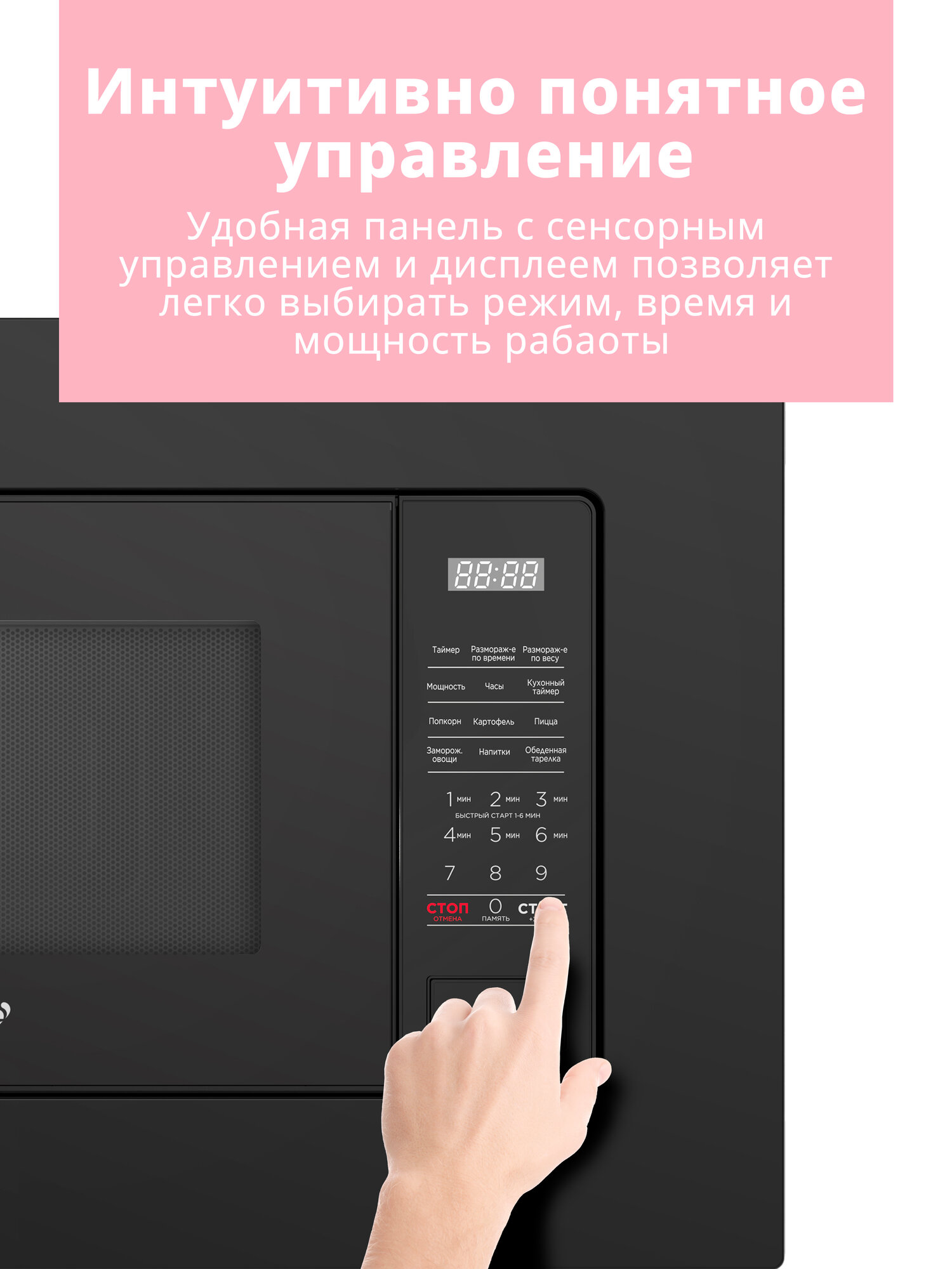 Встраиваемая микроволновая печь Comfee CBM2010B, 700 Вт, 6 автопрограмм, 10 уровней мощности, камера 20 л, сенсорное управление, дисплей, поворотный стол, черный интересное: