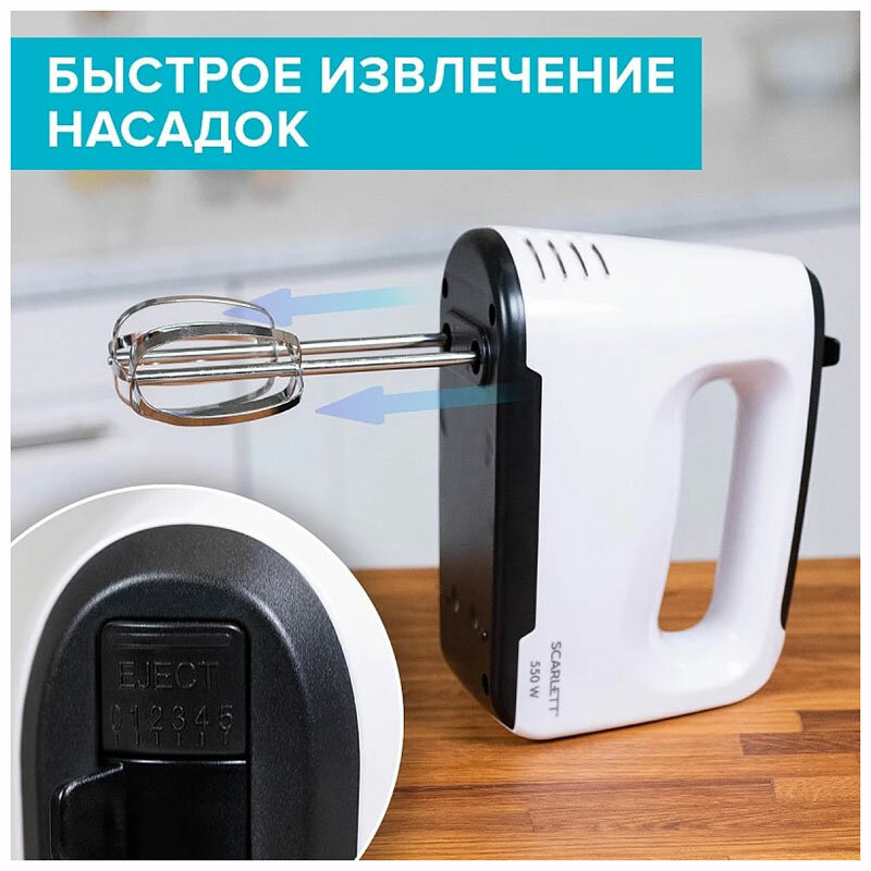 Миксер Scarlett SC-HM40S22, 550 Вт, белый интересное: