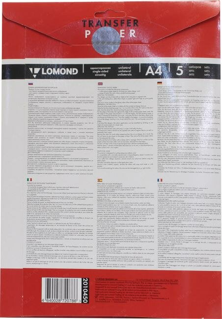 Бумага для временных татуировок Inkjet Tattoo Transfer, А4, 5 листов 2010450 Lomond