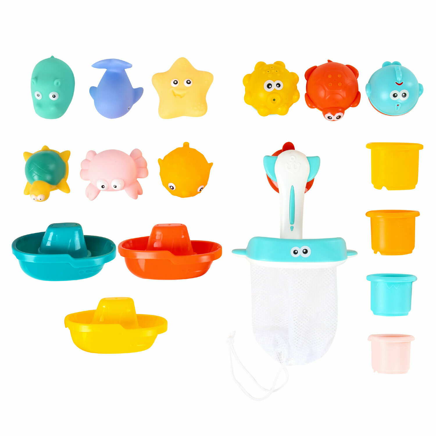Игрушки для ванной детские для купания, набор 17 шт с сачком