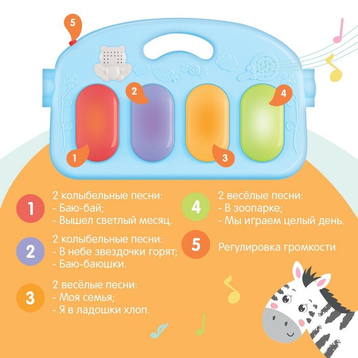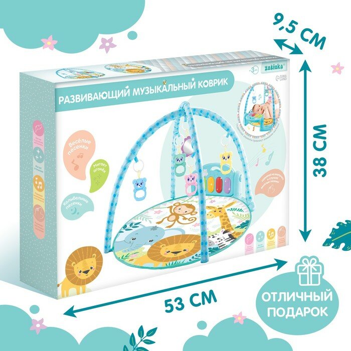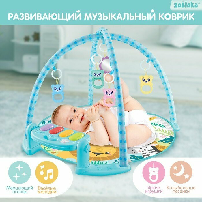 Купить Развивающий коврик ZABIAKA музыкальный с пианино, русская озвучка, свет, цвет голубой