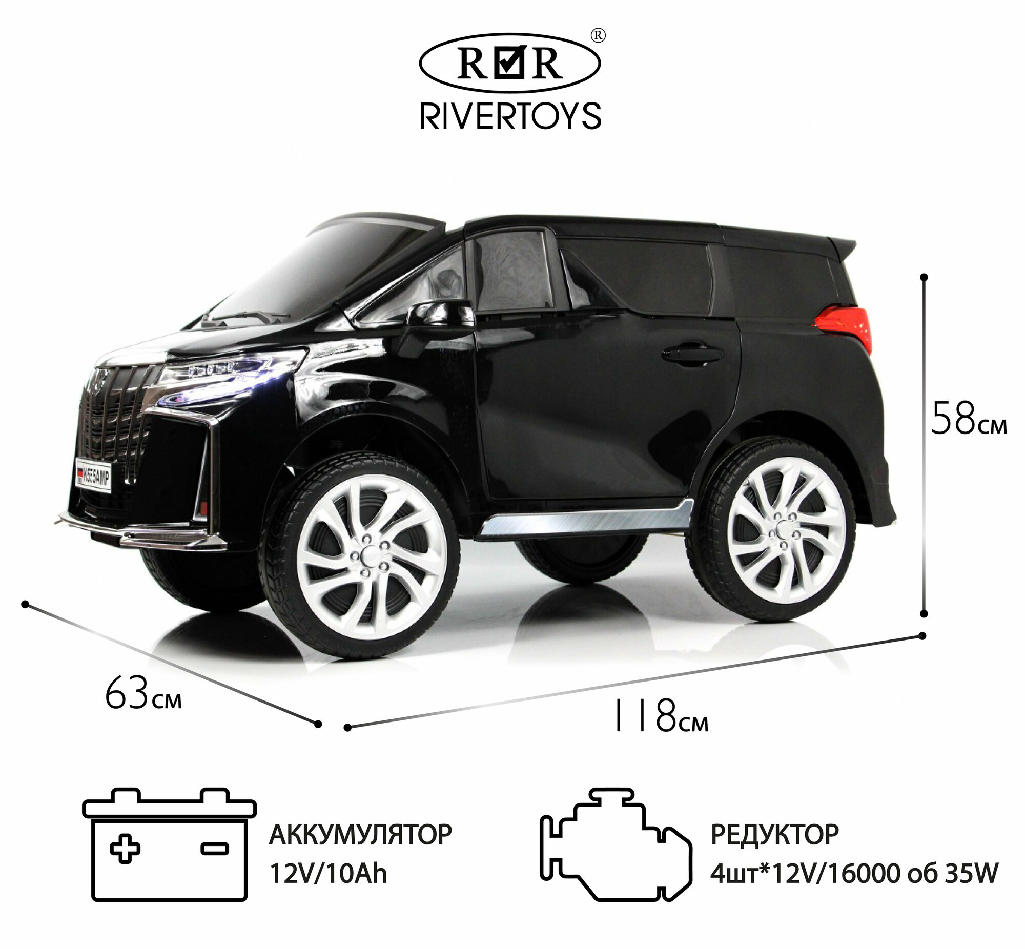 RiverToys Детский электромобиль K555AM черный глянец
